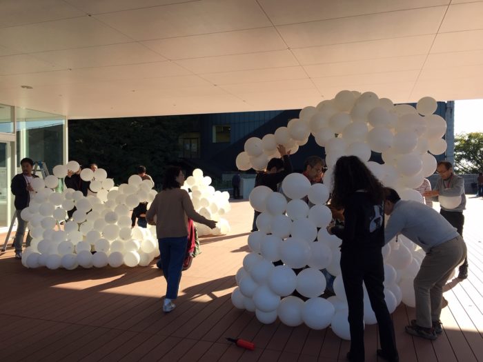 始まりは、それぞれのチームごとの小さなカタチでしたが、それぞれが交流をし、融合をして最終的には、一つの大きな風船カマクラが完成しました!