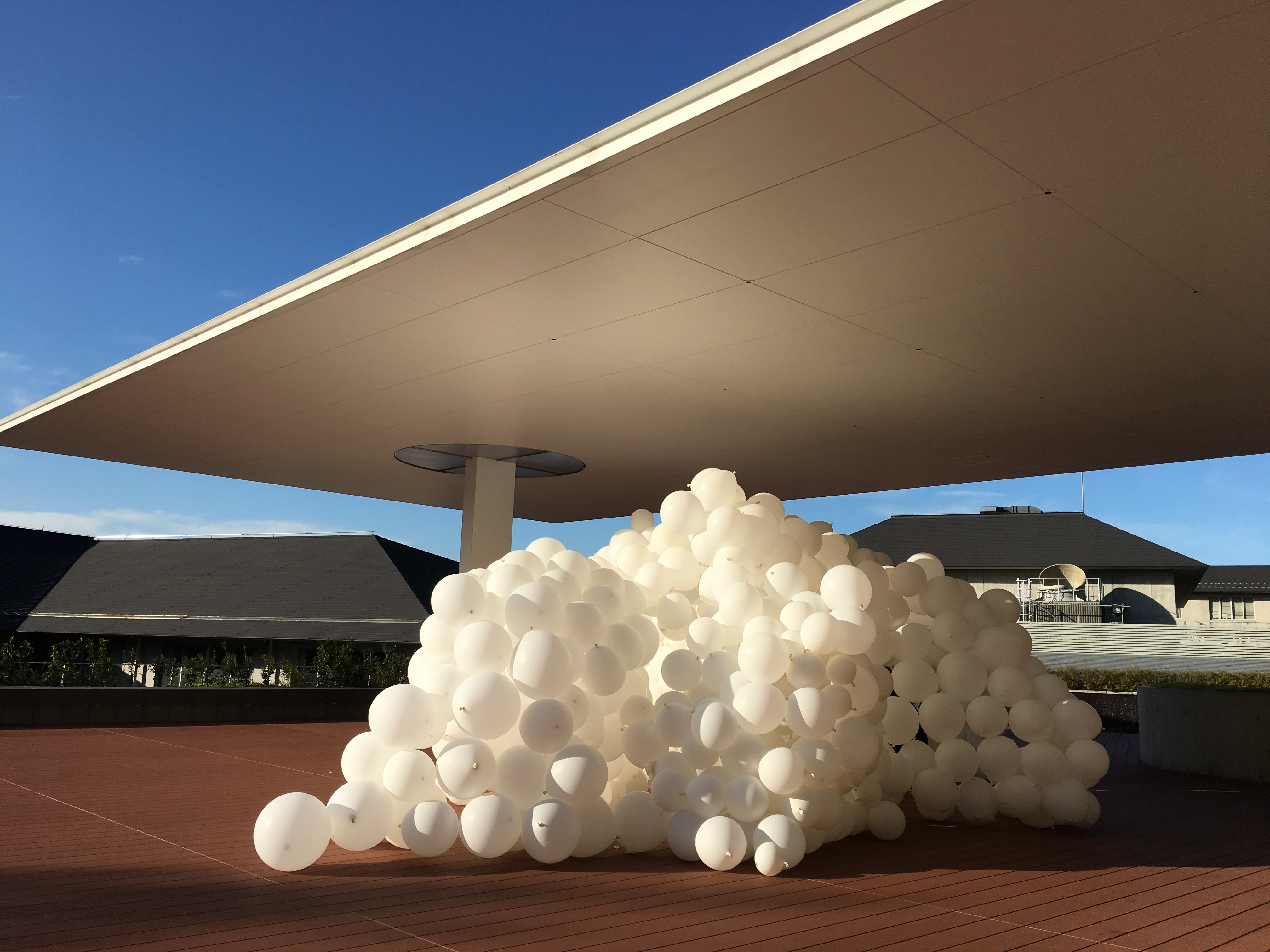 白い風船を通過した光は柔らかく、暖かく、重なっているところは影となり、涼やかです。