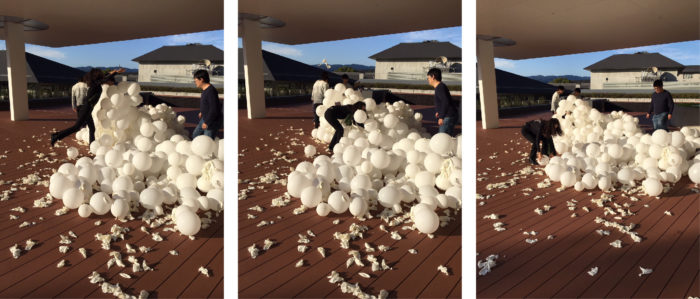 風船は軽いですが、それでも重さが伴います。どう繋げていったら、屋根(天井)が出来るか?