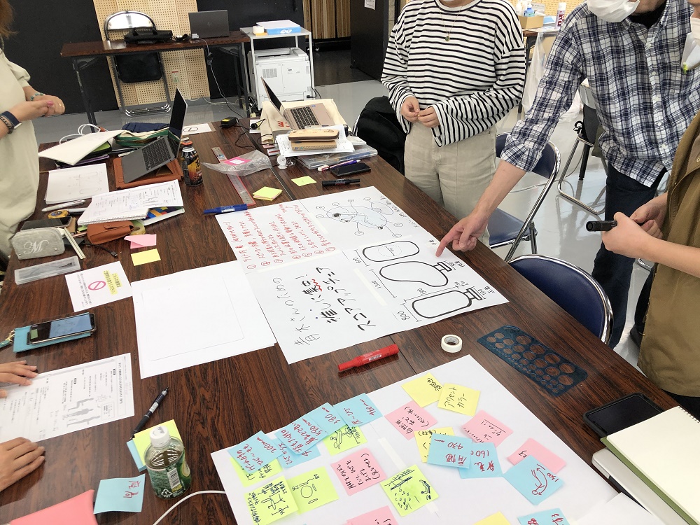 ・グループのデザインを1つのプレゼンシートにまとめます。自分の考えをどう伝えるか。皆の考えをどう引き出すか。グループワークの手法も、より良いデザインをしていくには身に付けたい技術ですね。