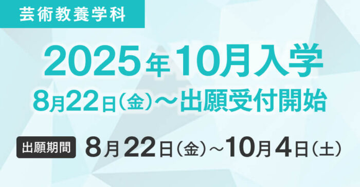 2025年8月22日(金)より、芸術教養学科の【2025年10月入学】の出願受付がスタートします。