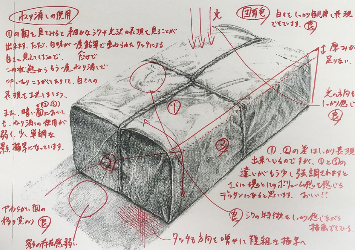 学生の作品やレポートには、教員が個別に添