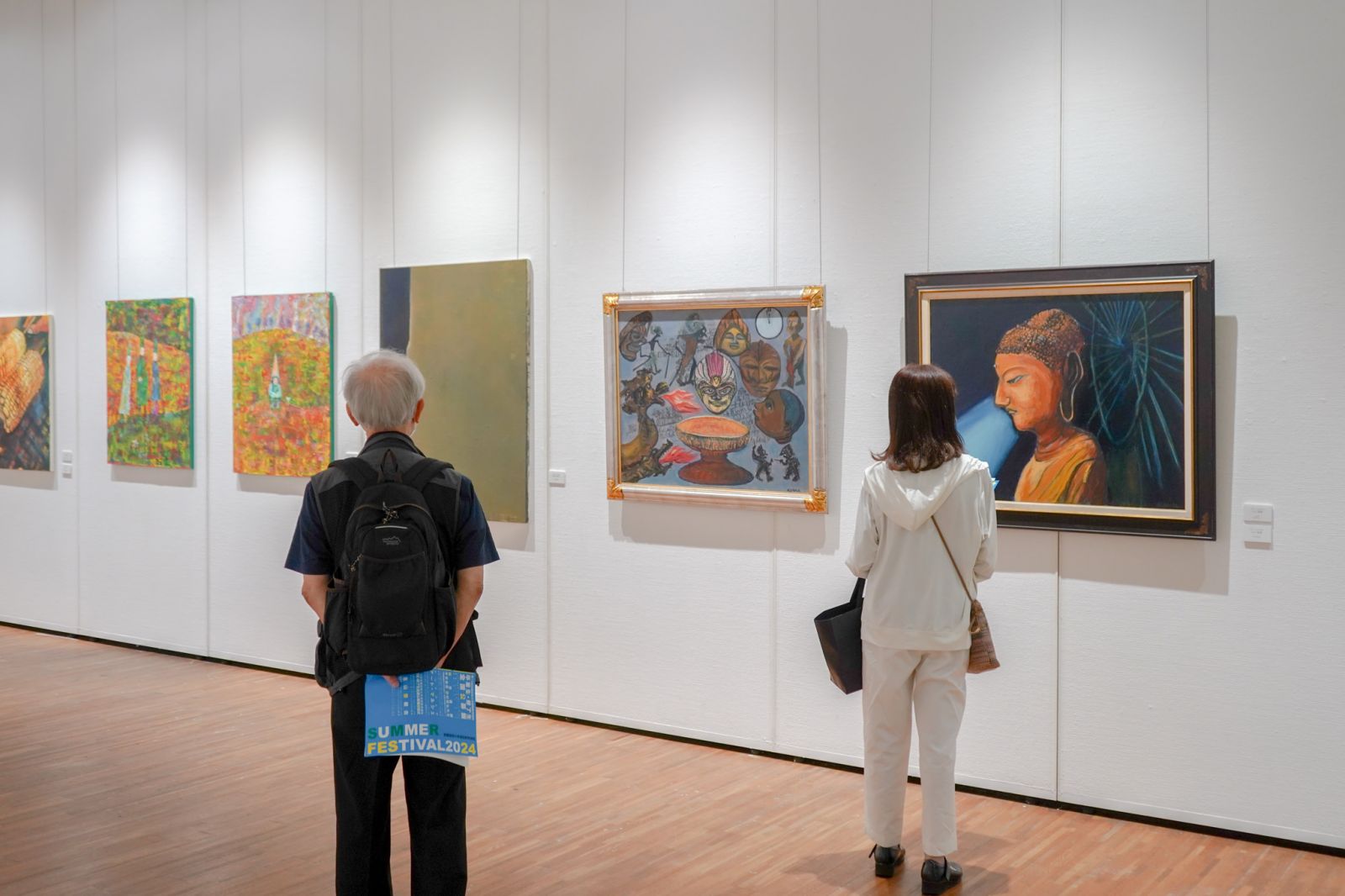 洋画や書画、陶芸、立体作品など、個性豊かな作品が並びました。特別講義のあとには、展示している卒業生と教員が言葉を交わす場面も。卒業後も続く交流に、みなさん笑顔で楽しそうにお話しされていました。