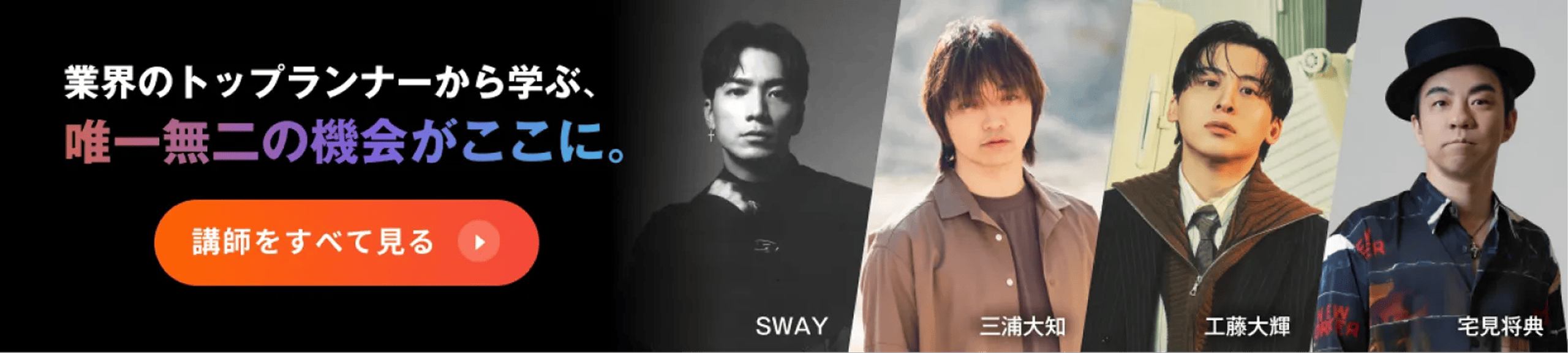 シンガーソングライター、プロデューサー、作詞作曲家、編曲家、トラックメイカーなど、音楽に関する幅広い分野の専門家が講師として集結。音楽や映像の大手企業がプロデュースする完全オリジナル動画教材により、初心者も経験者も、いちから「楽しく」そして「深く」学べます。