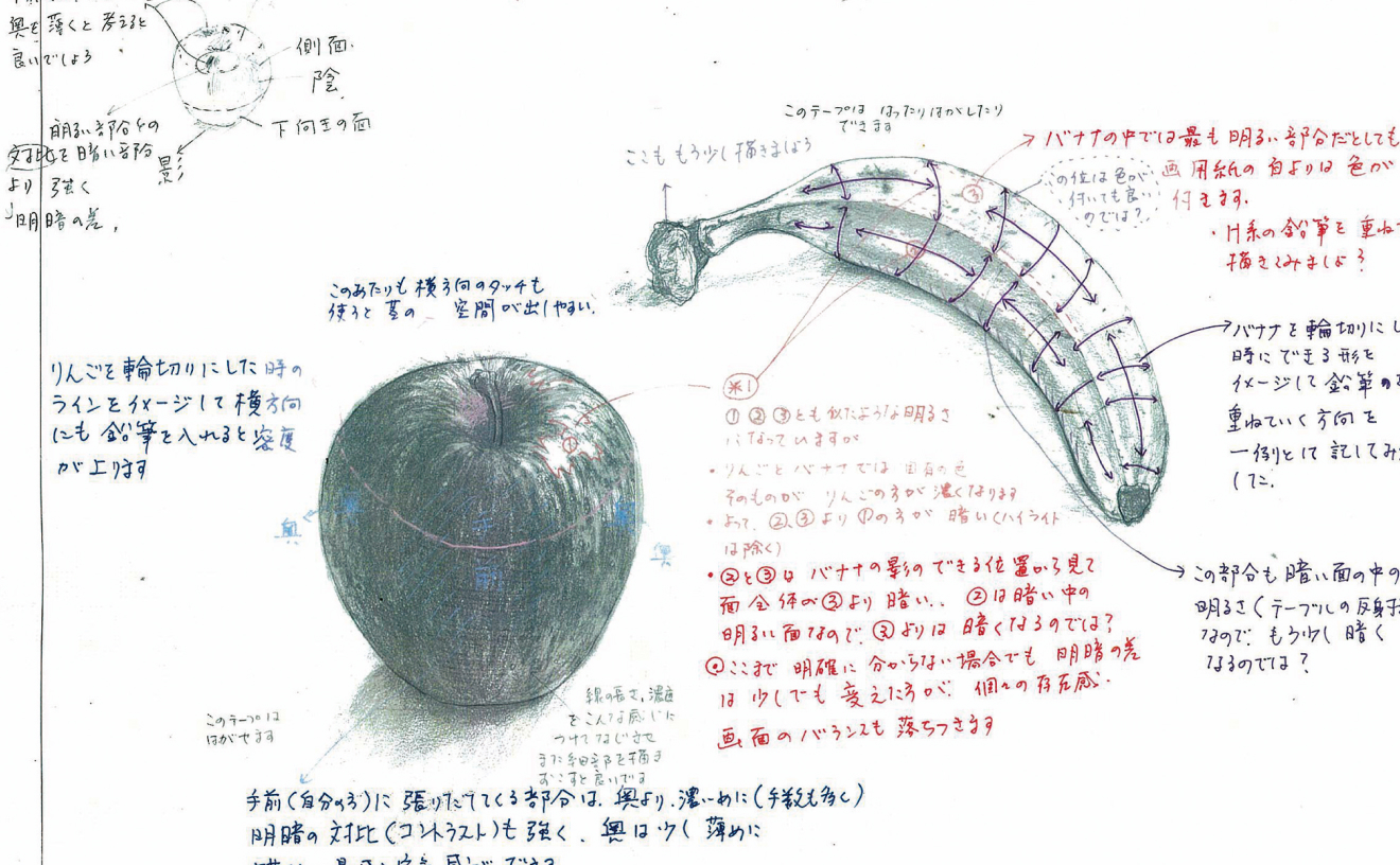 色鉛筆の特性を知り、使い方を学びます。