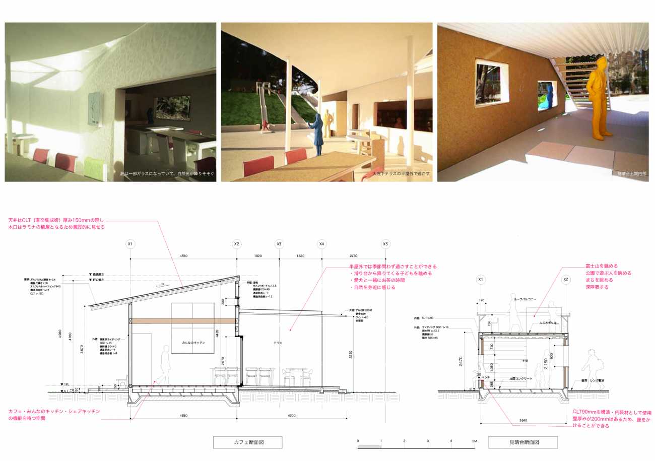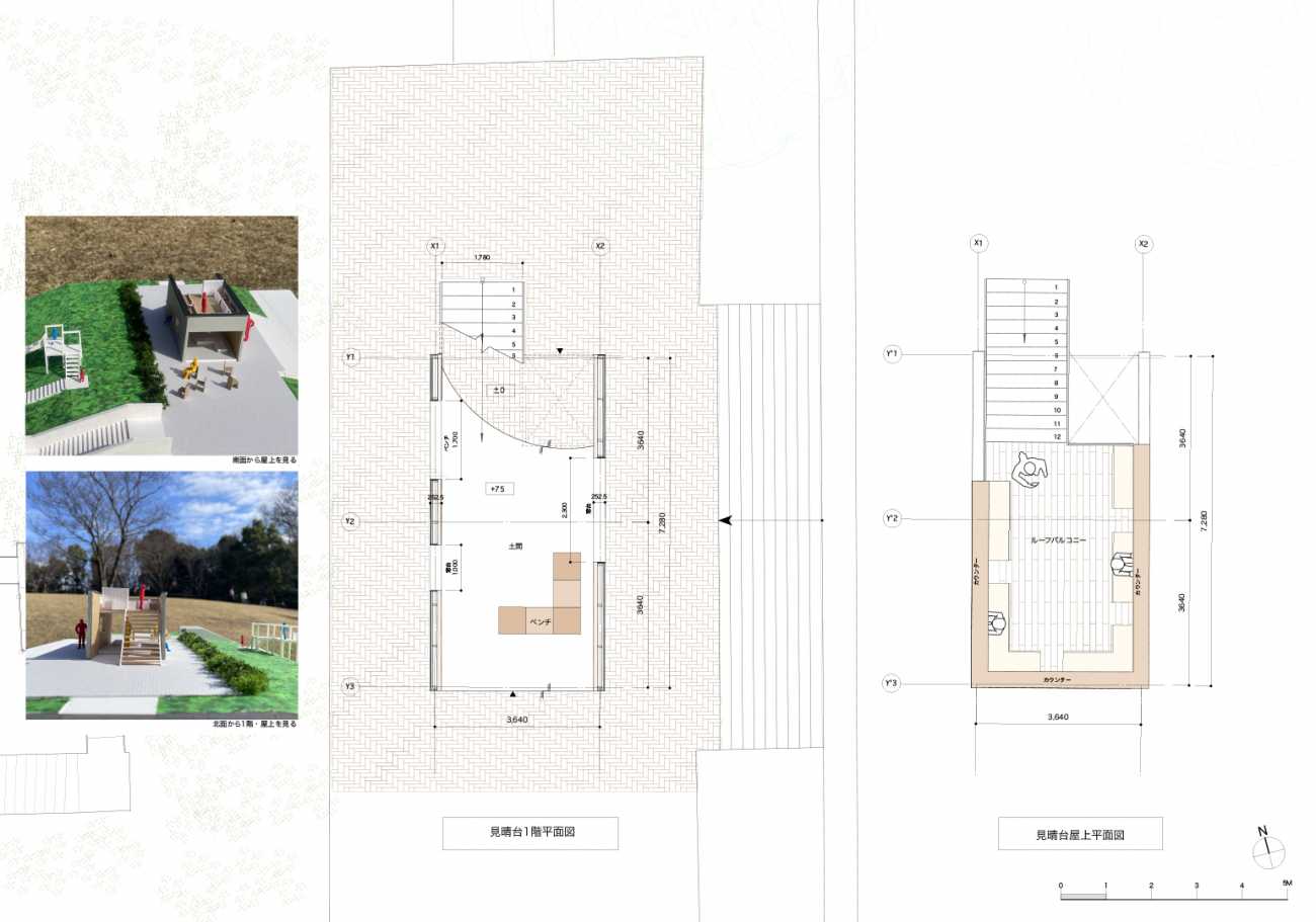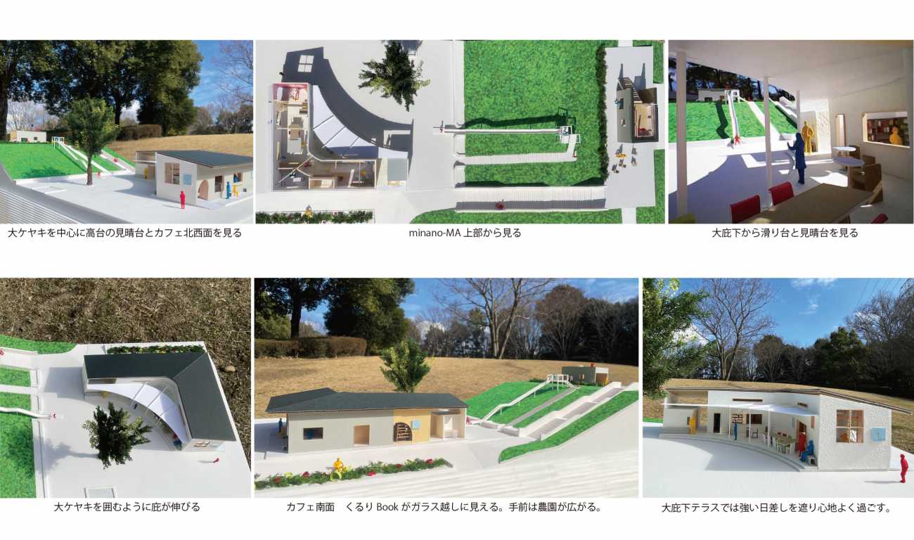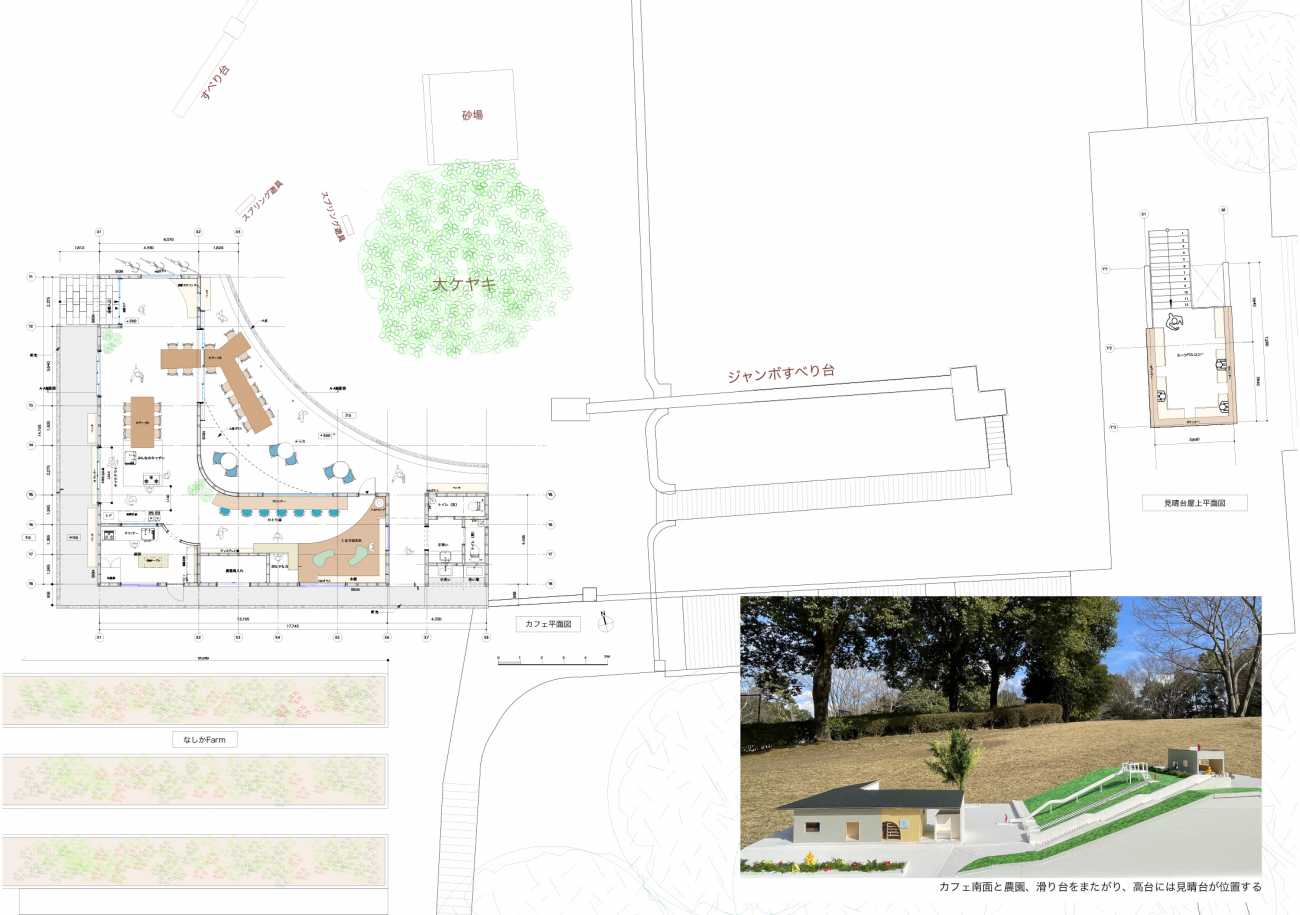 公園内に見晴台、カフェ、農園のゾーンを計画。