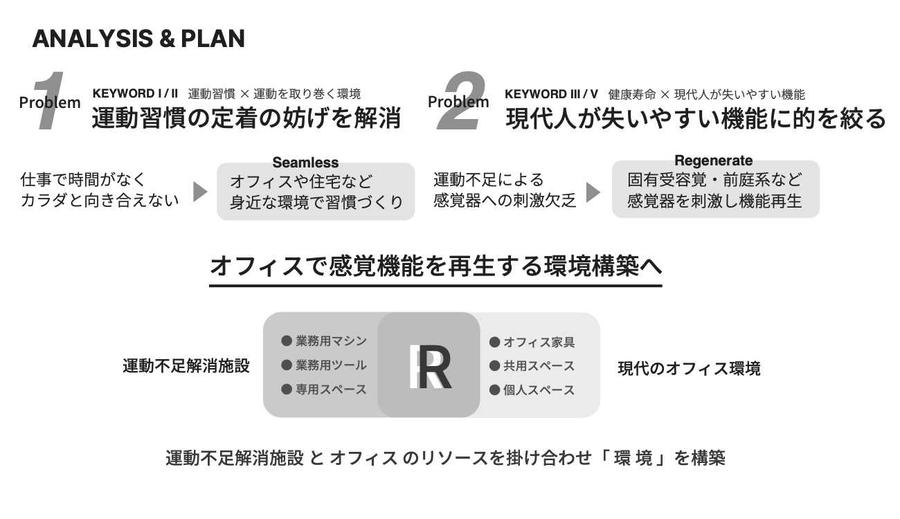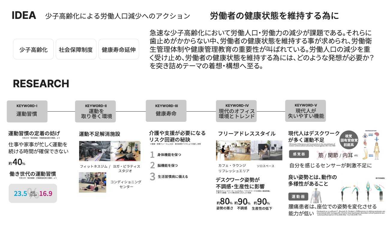 リサーチしたキーワードから、オフィスで使用する環境をデザインするという方向性が生まれた。