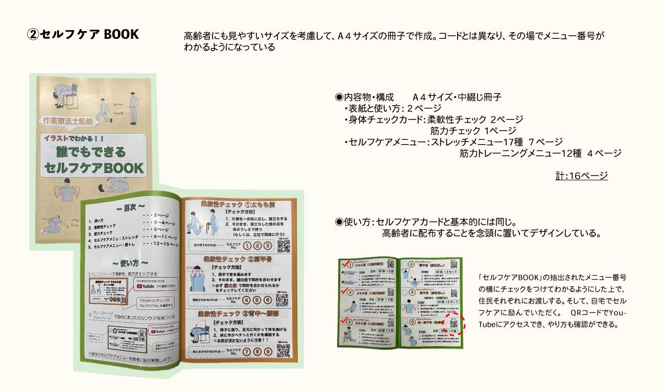 セルフケアBOOKは、基本的には高齢者に配布するために使用する。