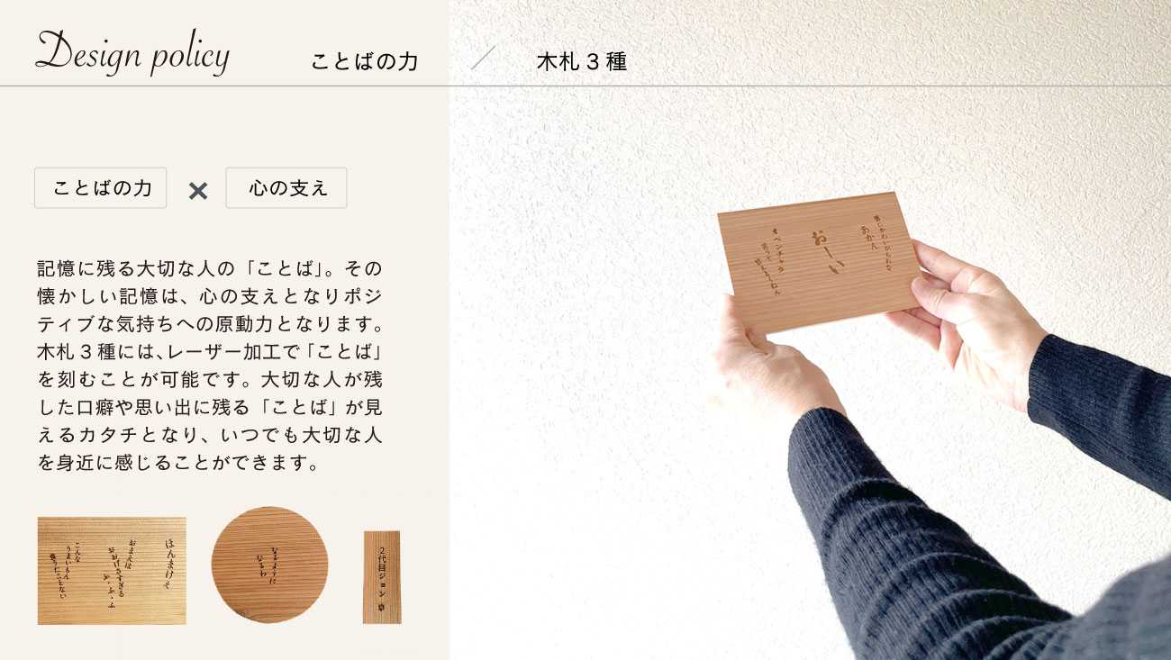 そこで、「大切な人の新しい想い方」について探求し、必要とされるモノのデザインに取り組むこととしました。