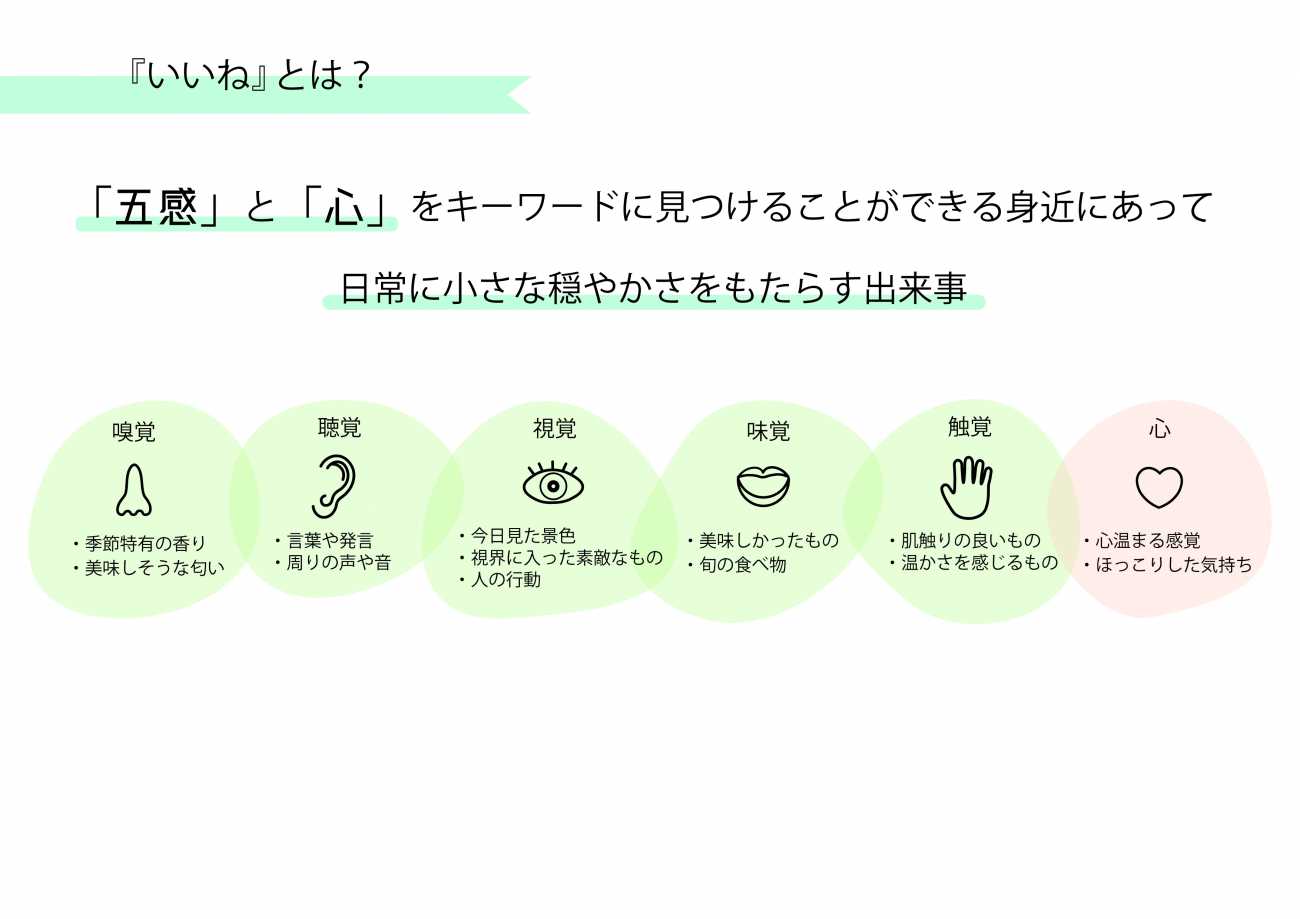 『いいね』を押したくなる出来事は自身の心が動かされたり、四季や人の行動など「五感」を研ぎ澄ますことで気づけるものに分類できると考察しました。またこの追加調査によって『いいね』を押したくなる出来事について話している人々の表情は明るく、この本当の意味での『いいね』はSNSデトックスを促すにあたって、重要なキーワードになり得ると感じました。