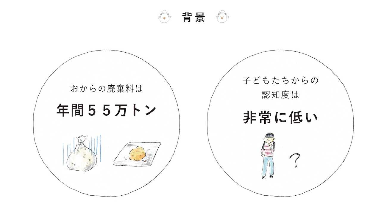 おからの年間廃棄量は約55万トン。石川県金沢市にある豆腐屋「高山豆腐店」では、毎日10キロ以上のおからが処分されていました。また、金沢市にある放課後児童クラブでアンケートを取り、子どもたちからのおからの認知度がとても低いことがわかりました。