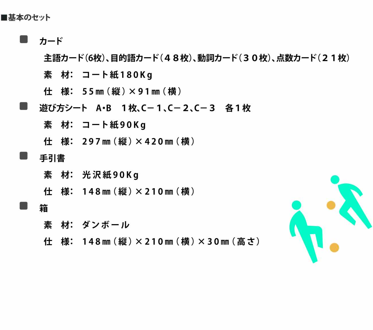 にほんごできるかな? ①主語、②目的語、③動詞のカードを選び、日本語の文を作るゲームです。
