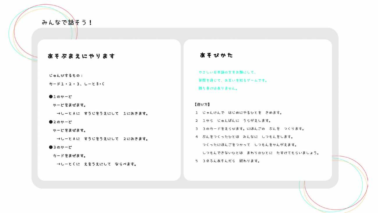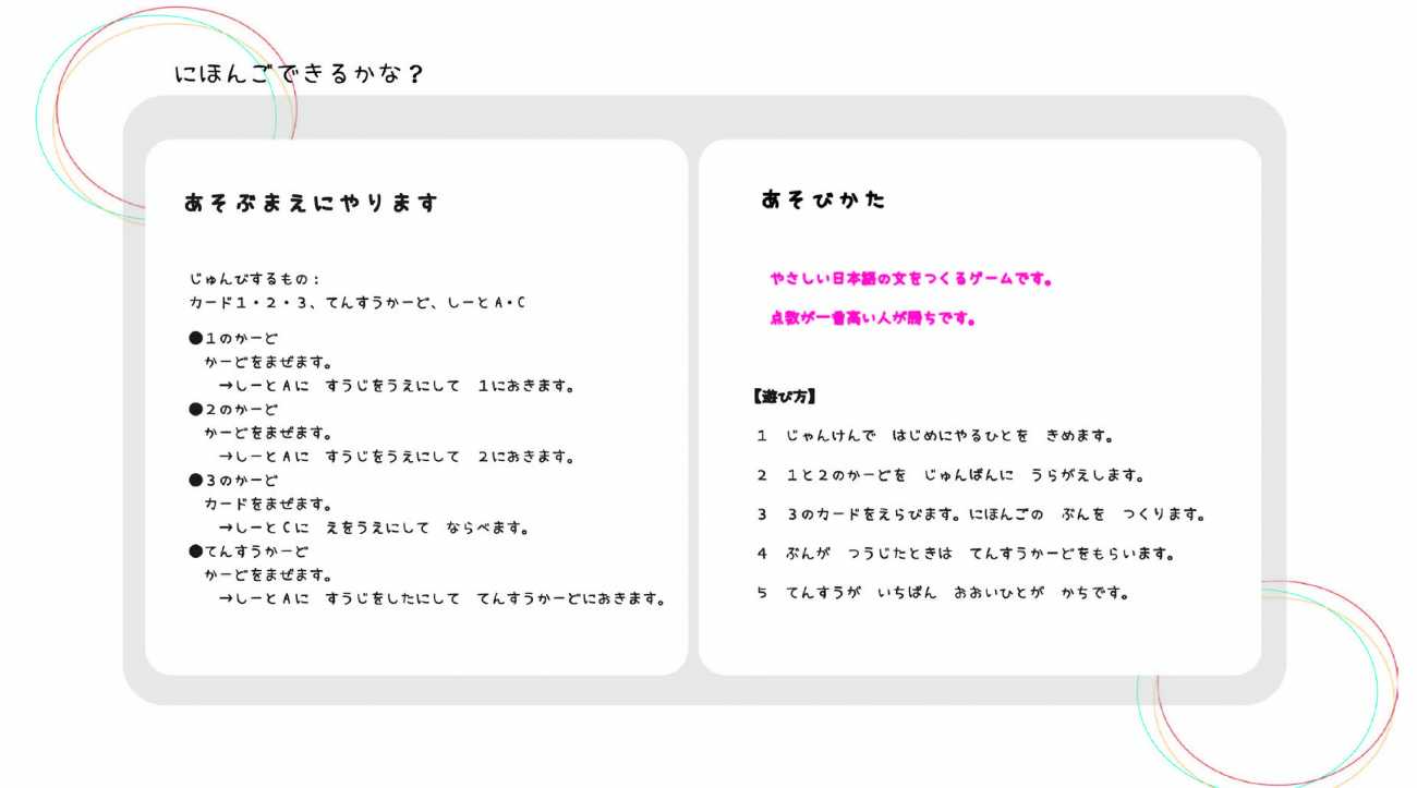 ①にほんごできるかな? ゲームの準備と遊び方です。