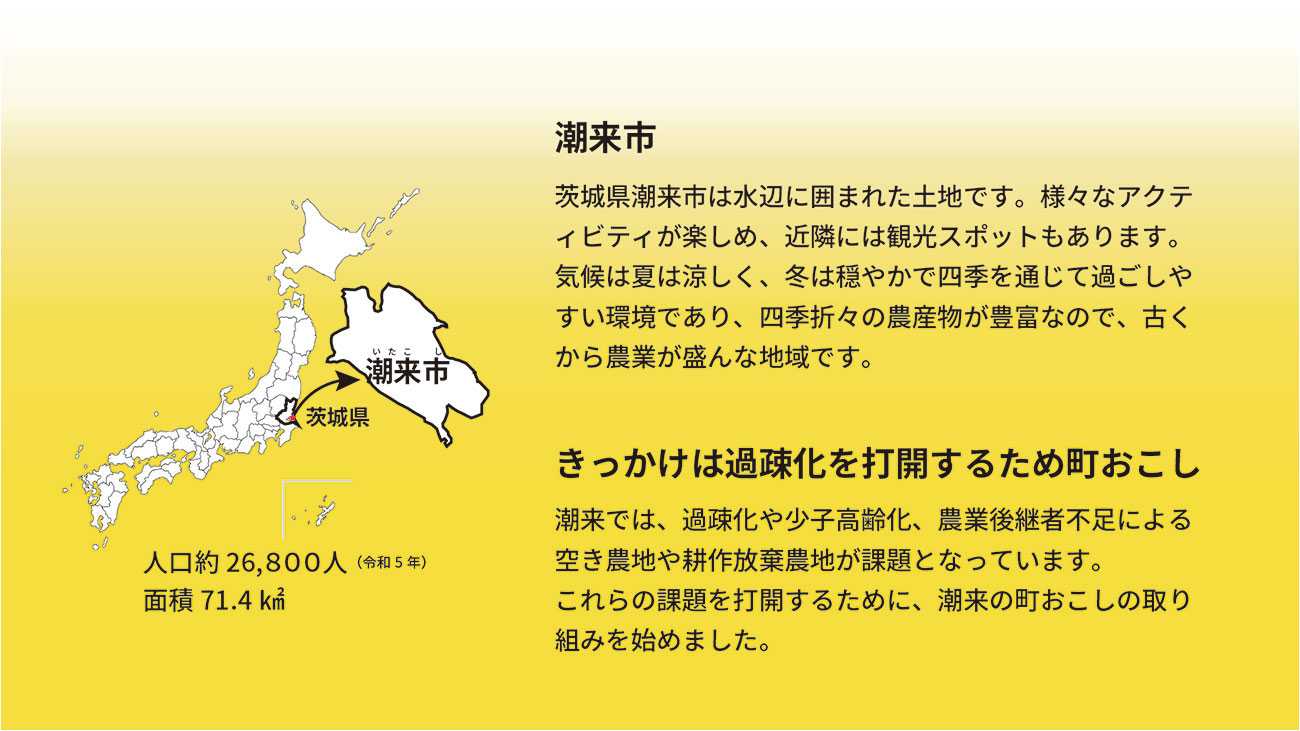 潮来麦酒では、潮来の豊かな農産物を活用して地域の魅力を引き出し、地域資源を活かすことで地域活性化へつなげていこうと考えています。