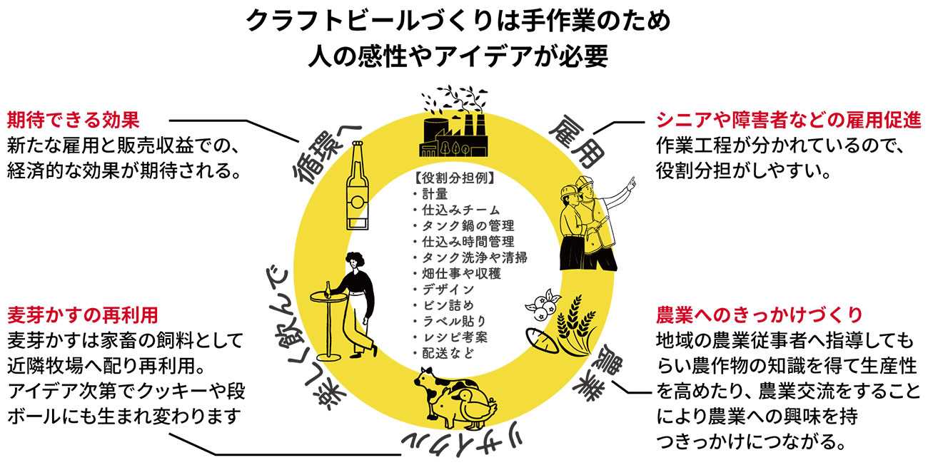 クラフトビールづくりにおける効果。 地域循環を促して、にぎわいのあるまちを目指します。