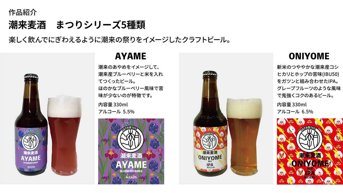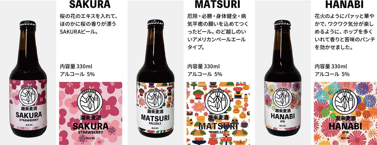 ”SAKURA”は春に行われる権現山さくらまつりの桜を、”MATSURI”は夏祭りの潮来祇園祭禮を、 ”HANABI”は水郷潮来花火大会をそれぞれイメージしてつくりました。