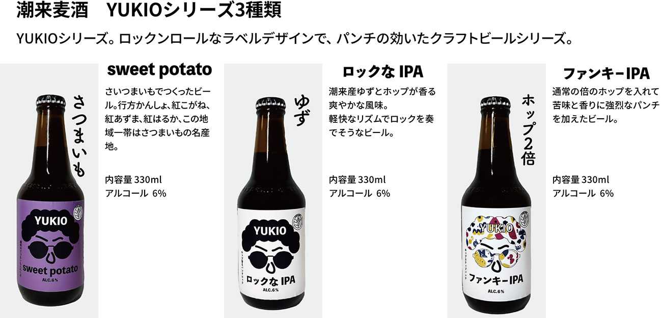 YUKIOシリーズ。パンチの効いたクラフトビールシリーズ。 廃棄されてしまう農産物でビールをつくりました。