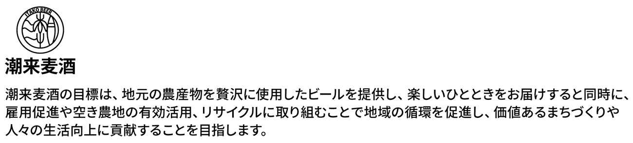 「潮来麦酒」は、潮来の農産物を贅沢に使用した新しい味わいを提供し、乾杯、笑い声、にぎわいのある楽しいひとときを演出します。この取り組みは、地域の雇用促進や空き農地の有効活用を通じて地域循環を促し、価値あるまちづくりと人々の生活に貢献することを目指しています。