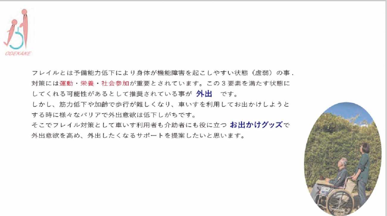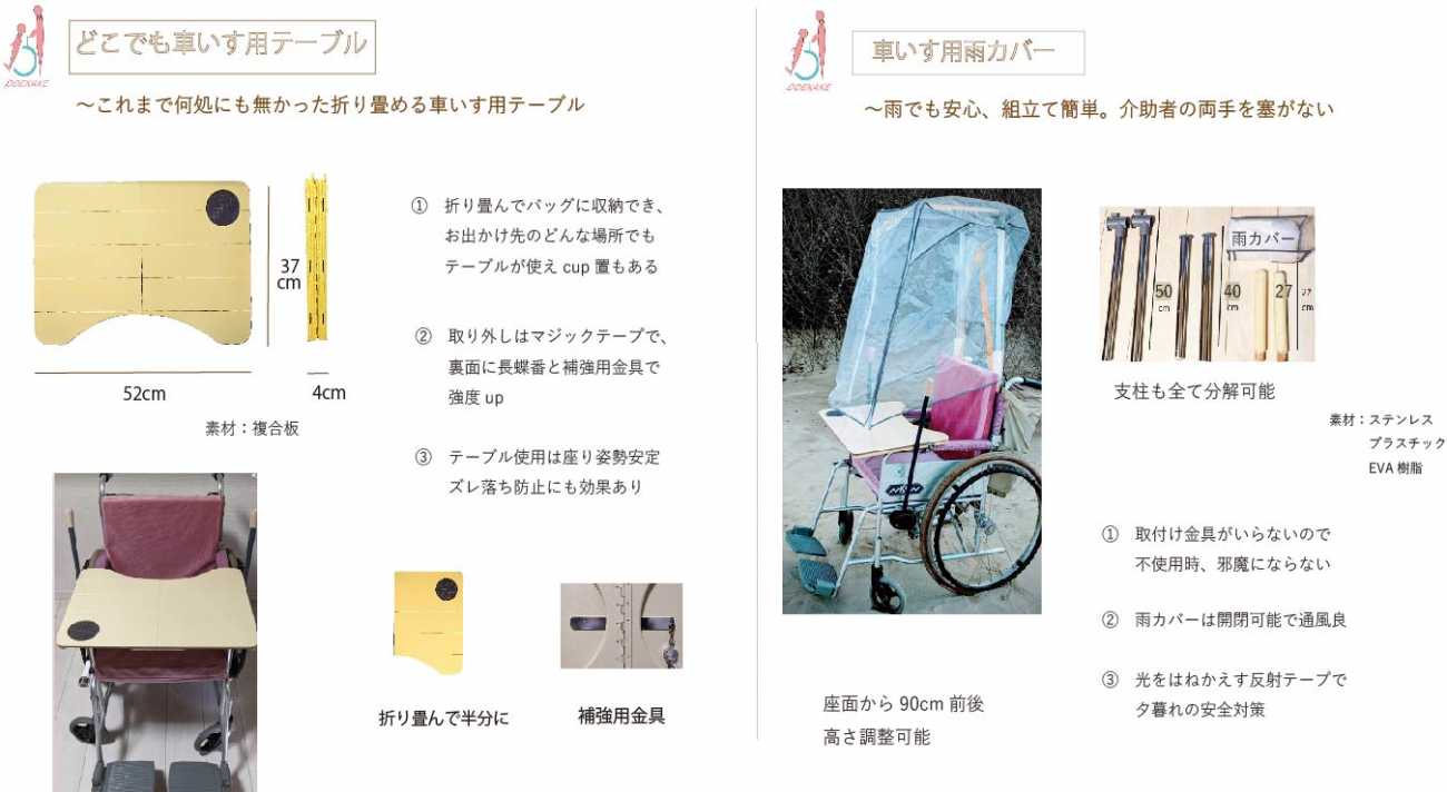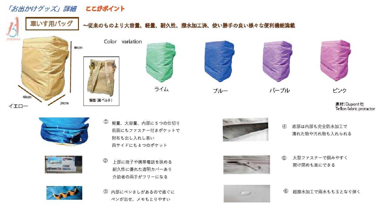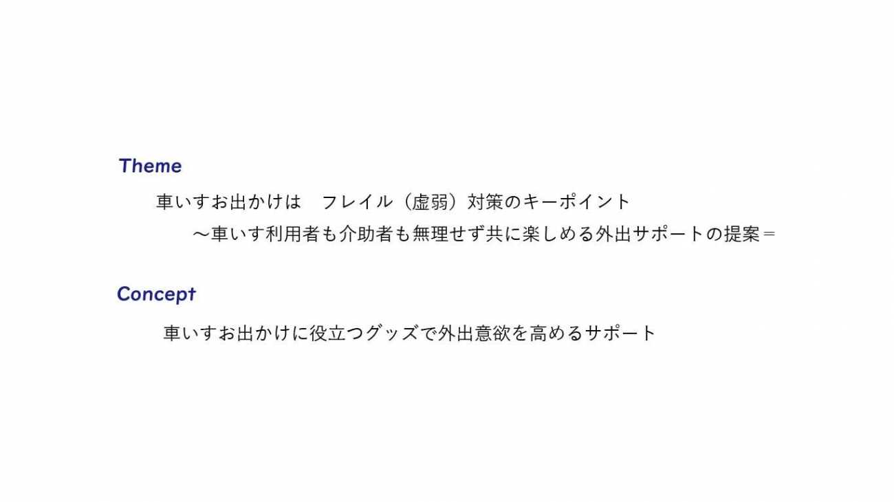 コンセプト:「車いすお出かけに役立つグッズで外出意欲を高めるサポート」