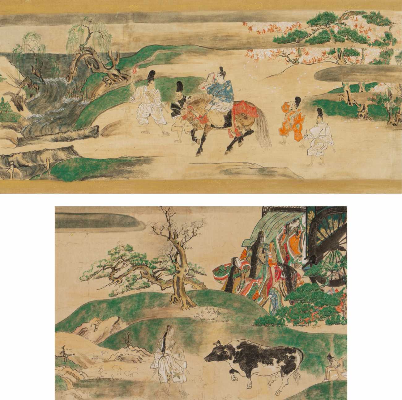 薄美濃紙/岩絵具, 水干絵具, 墨, 膠, 金泥