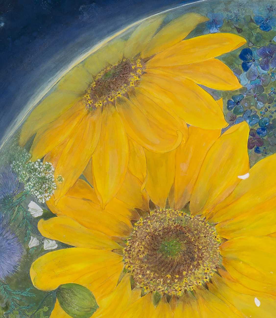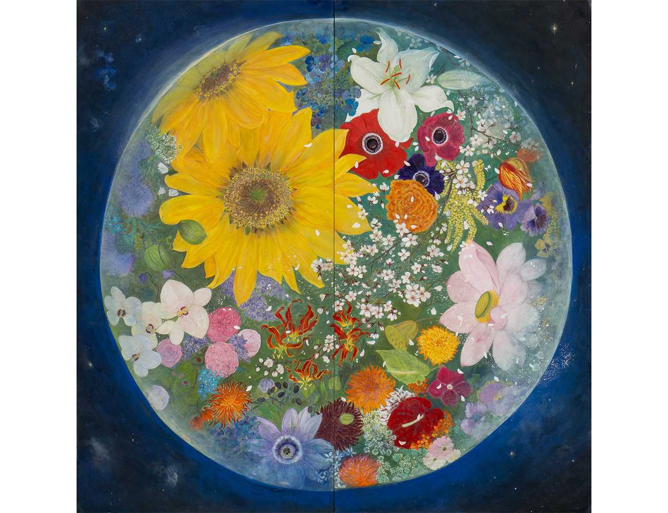 日本の象徴の花は「桜」、各国にも象徴花があるように、文化や民族、思想の違いを互いに尊重し、花々で咲き満たされた共存共生の惑星をこの宇宙に創造してみた。