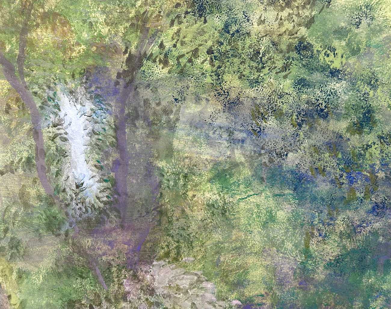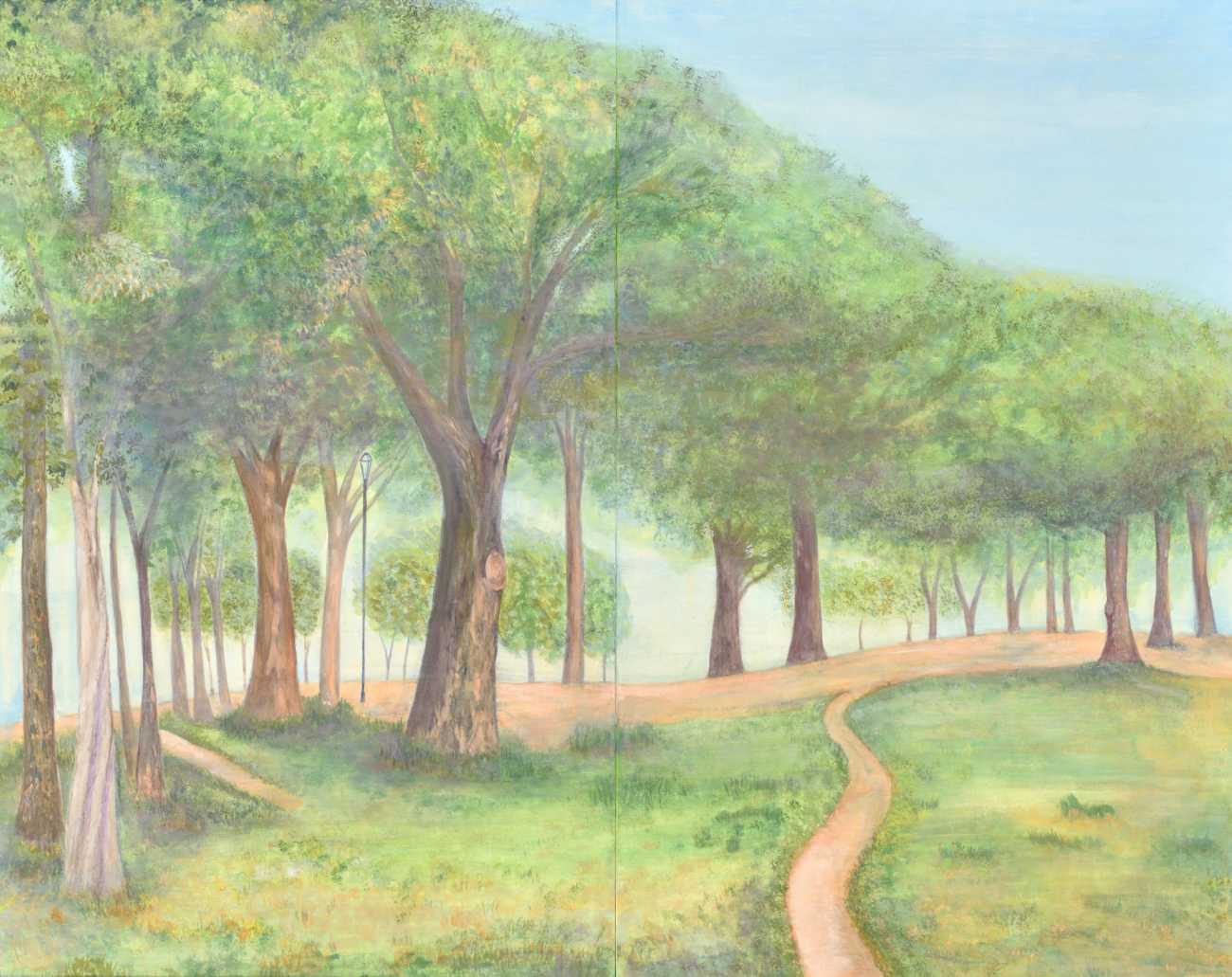 近所の公園の何でもない景色ですが、この瞬間を切り取って家に持ち帰ることができたら癒されるのに・・・と思い描きました。写真のようなリアルな表現ではなく夢の中に出てくるふわりとした空気感を意識しました。
