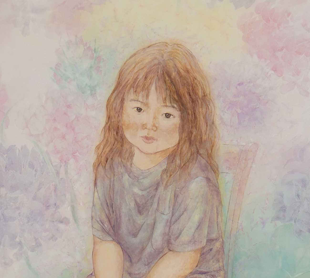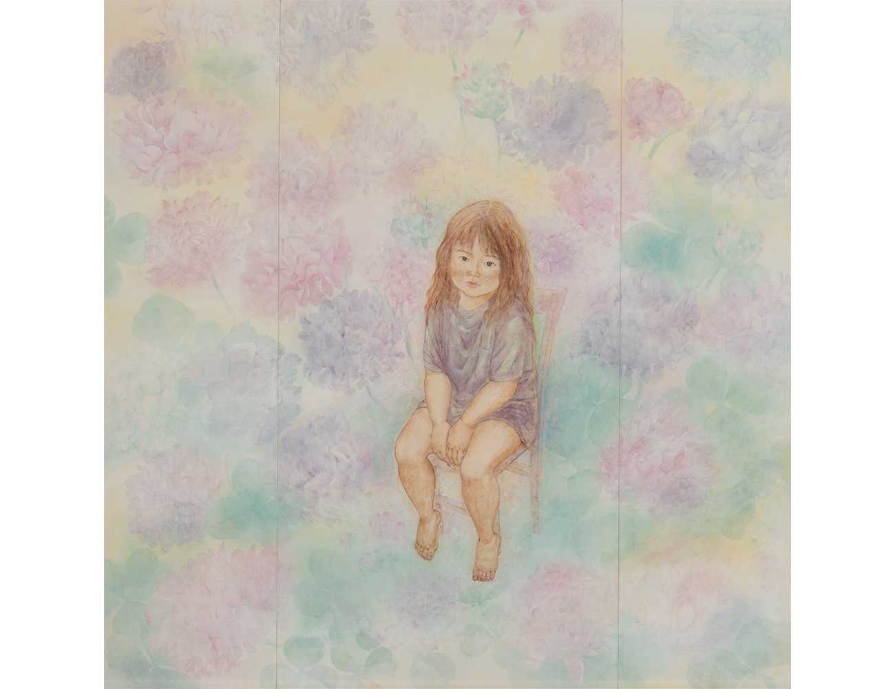 近くの公園を散歩していたら、子と一緒に蓮華の花かんむりを作ったのを思い出した。しゃがんで花を見つめていると、花の中に小さな子の姿が見え、その様子がとてもかわいらしく、その一角がとてもあたたかく、親しげに感じられたので、それを表現したいと思った。