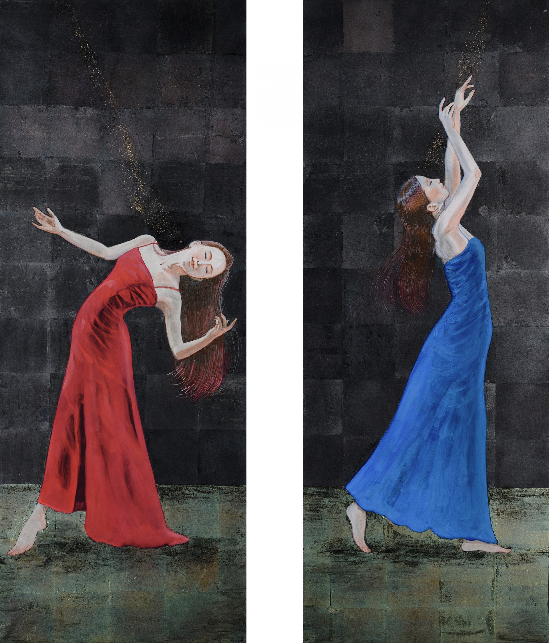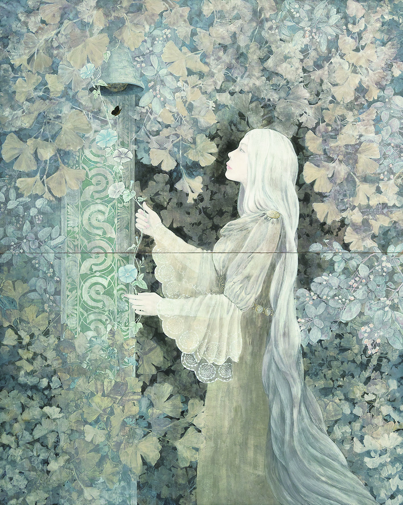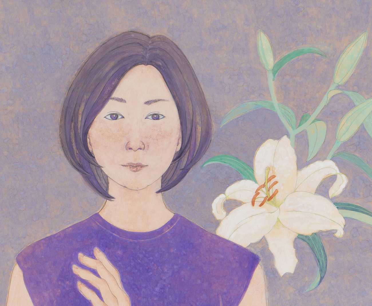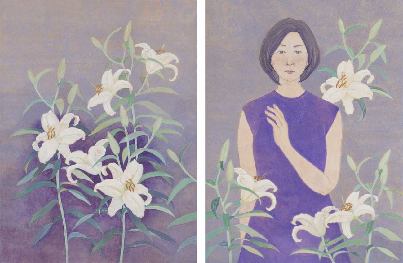 白いユリはマドンナリリーと呼ばれ、聖母マリア、母性の象徴とされてきた。第1子を出産し、はじめて母親となった若い女性と母性の象徴とされてきた白いユリをイメージして描いてみた。
