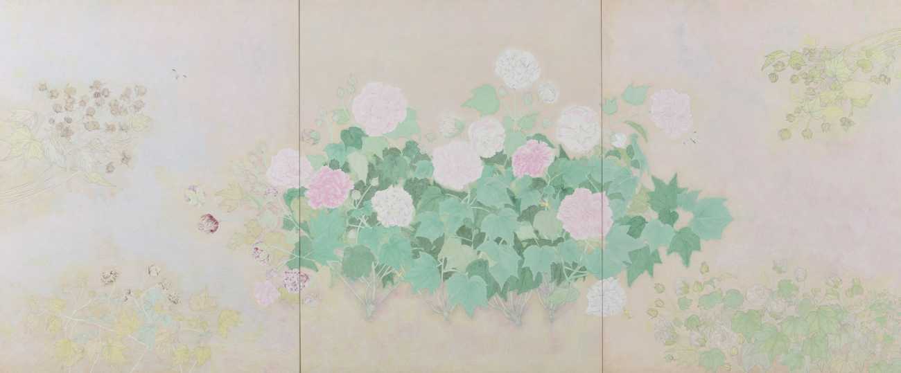 1日で白からピンク色に変化する、酔芙蓉の美しさに惹かれました。写生をしていくなか、さまざまな姿、形になっても、存在してくれているだけで愛おしく感じるようになりました。酔芙蓉も、私や虫たちなどを無条件の愛で受け容れてくれているように感じられました。