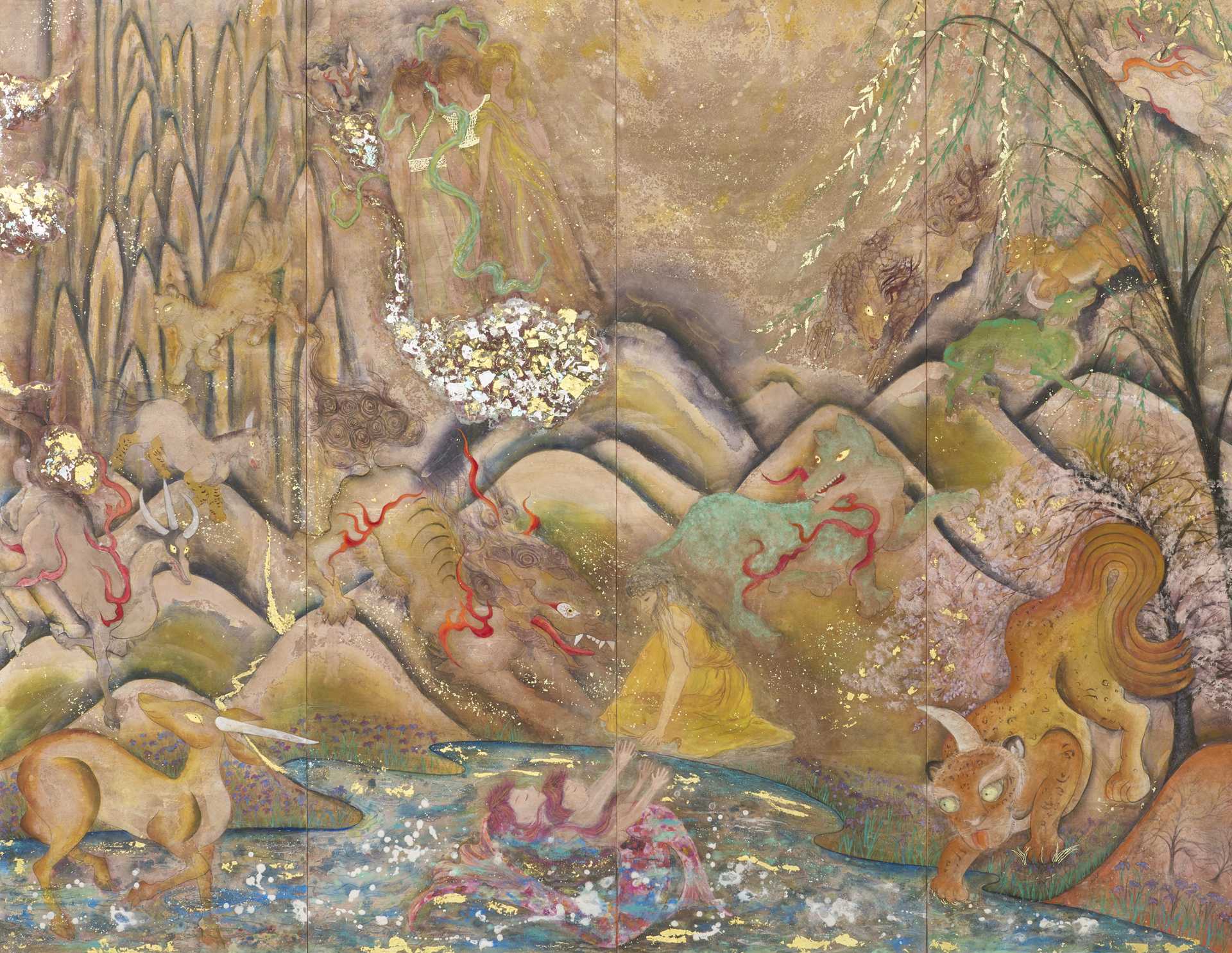 紙本/岩絵具, 水干絵具, 墨, 膠