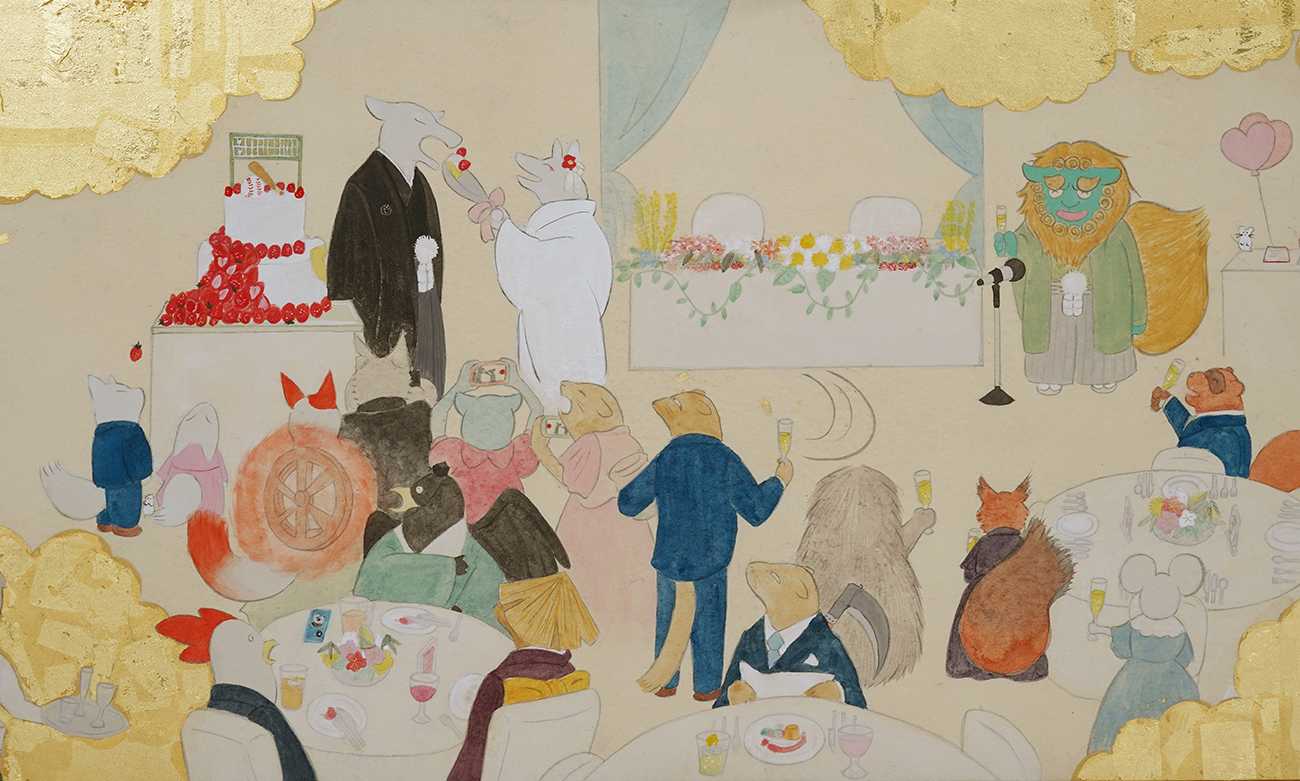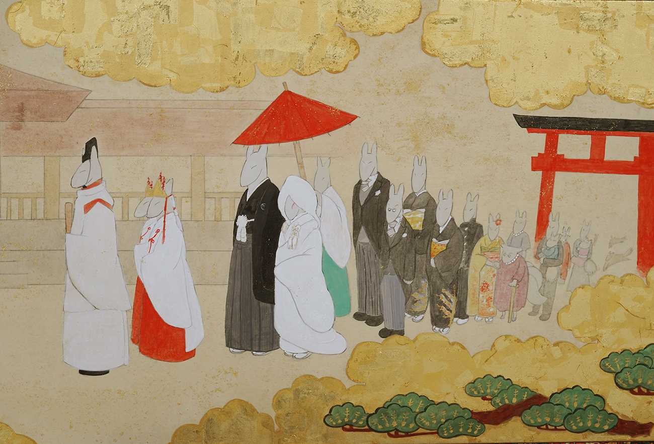 紙本/岩絵具, 水干絵具, 墨, 膠, 金箔, 金泥
