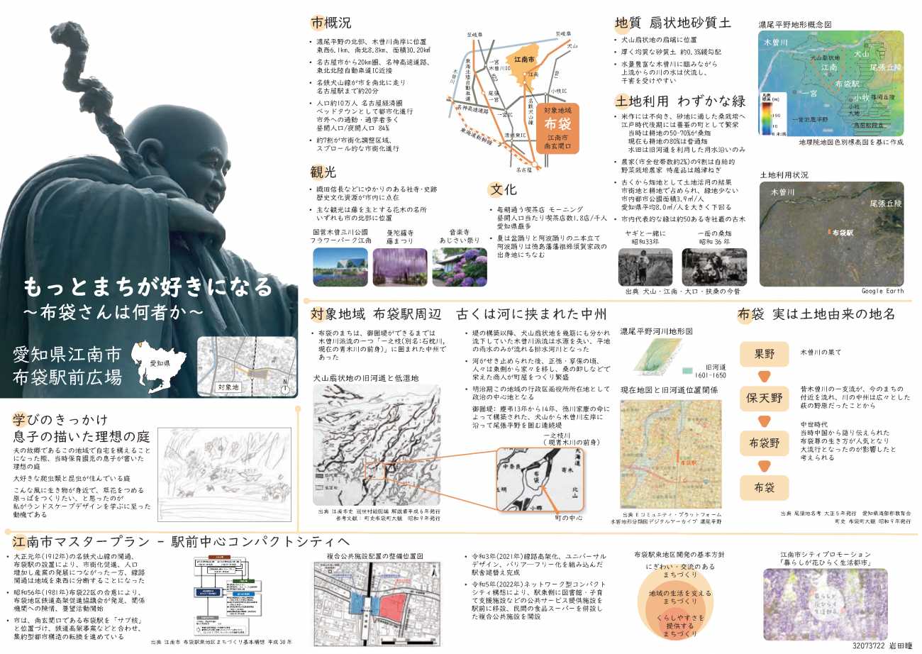 対象地は愛知県江南市、布袋駅前広場。名古屋経済圏のベットダウンとして都市化が進行、近年は駅前中心のコンパクトシティへの転換に向けた整備が進んでいます。