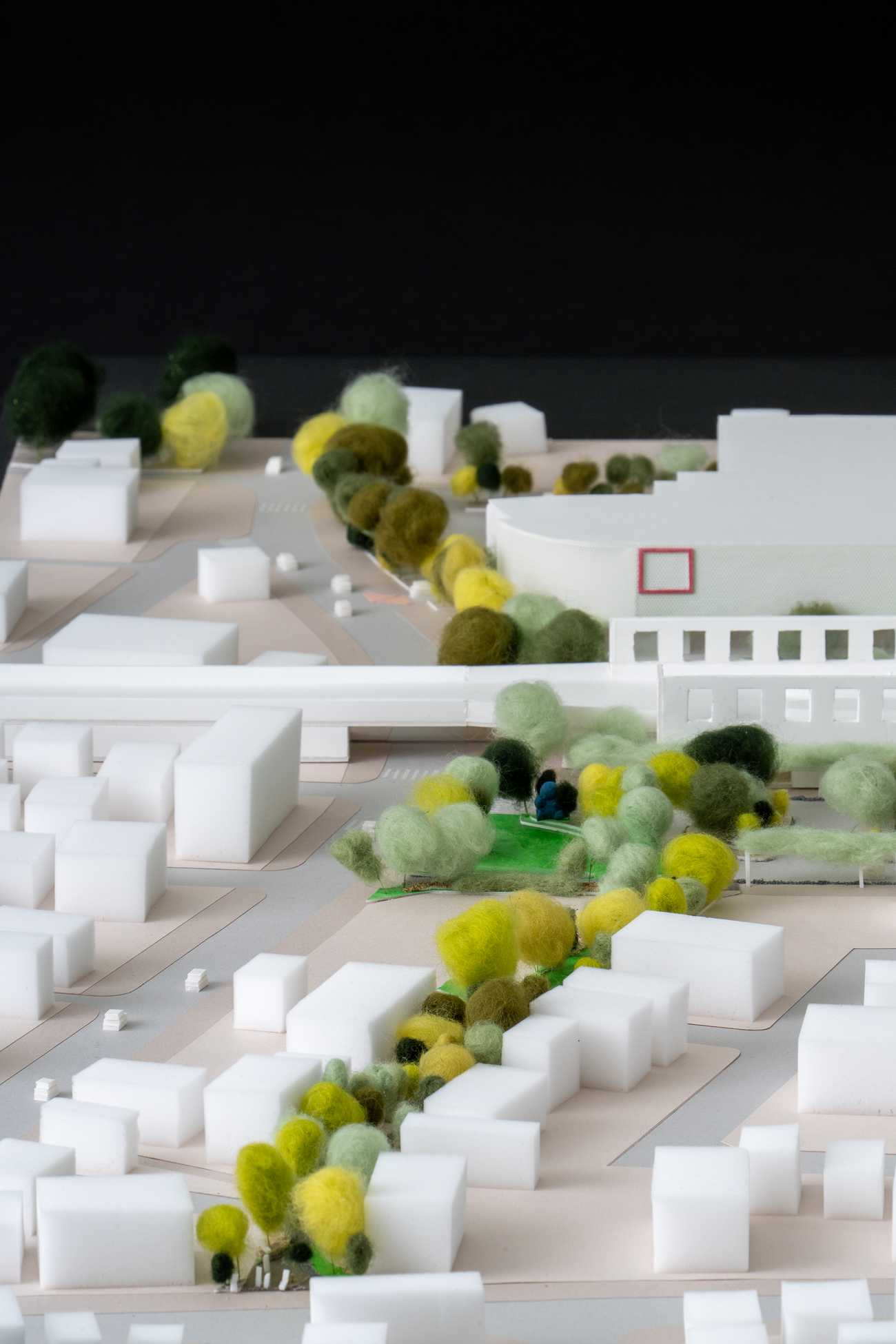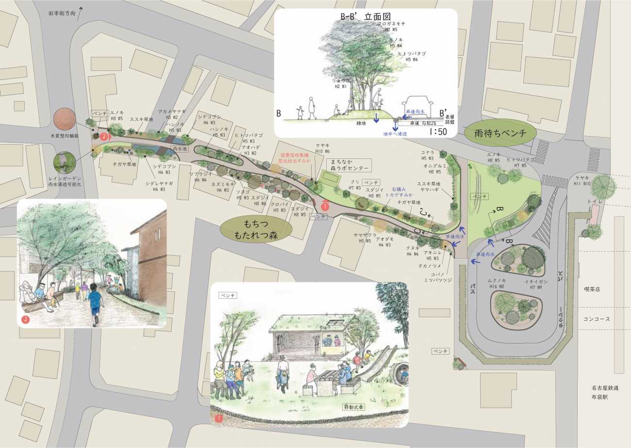 まちなかへつなぐ緑の回廊-布袋駅を西から望む