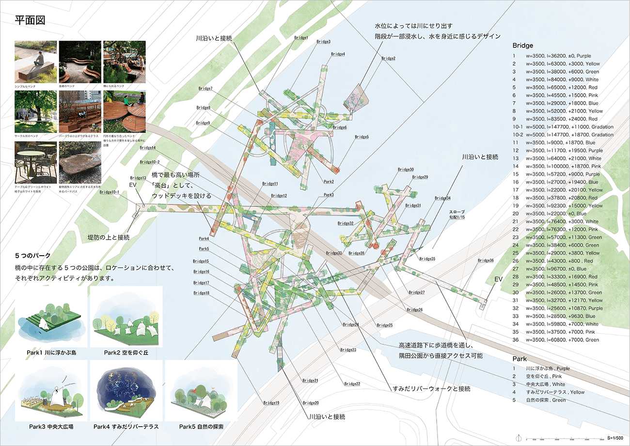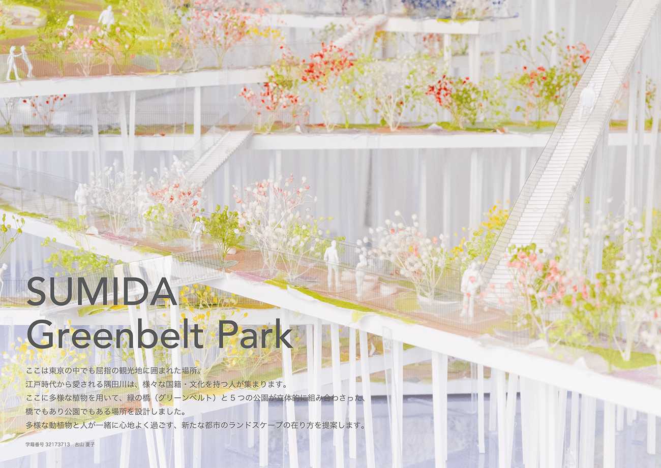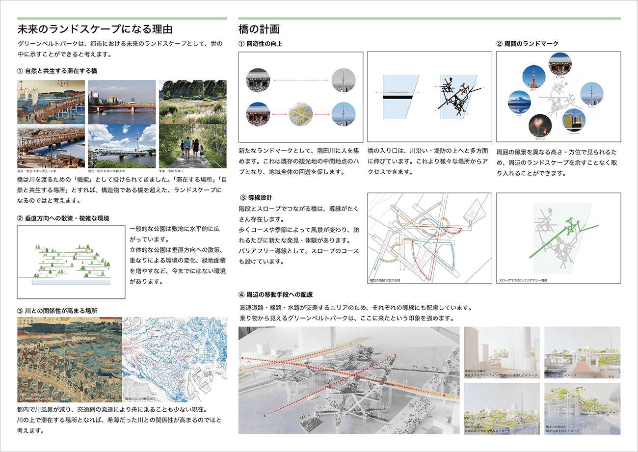 隅田川が流れるこの場所に、緑の橋「SUMIDA Greenbelt Park」を提案します。