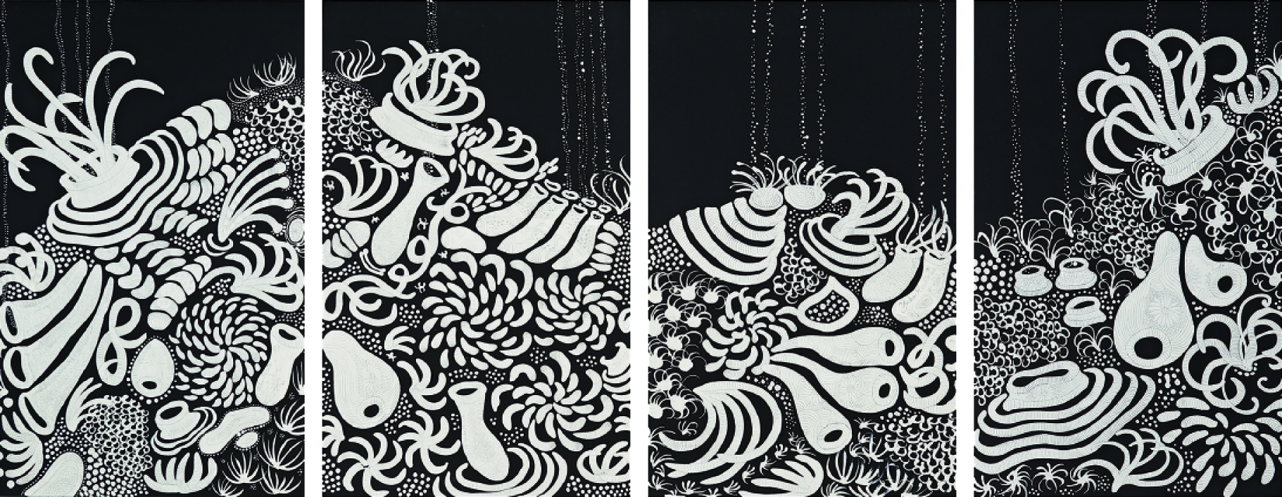 普段見慣れた海の水の色や波の動きの変化など刻一刻と移り変わる海の姿を再発見したことからこの作品の着想を得た。