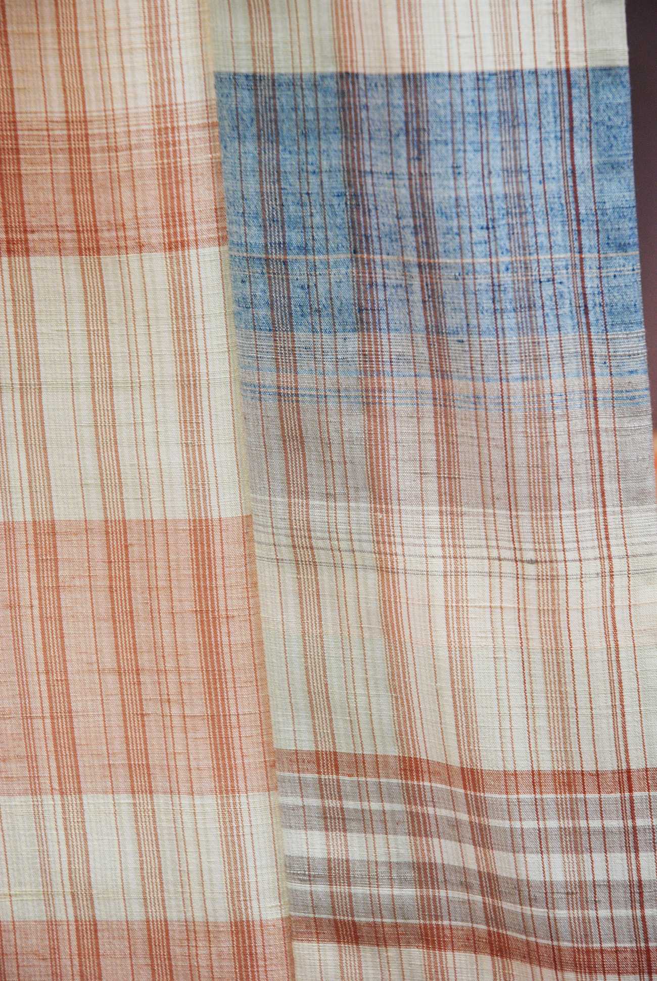 染料は地元伊達藍と廃棄されるはずだったイチイとリンゴの枝から頂いた。6次産業としてこれから地域貢献につなげる作品とした。