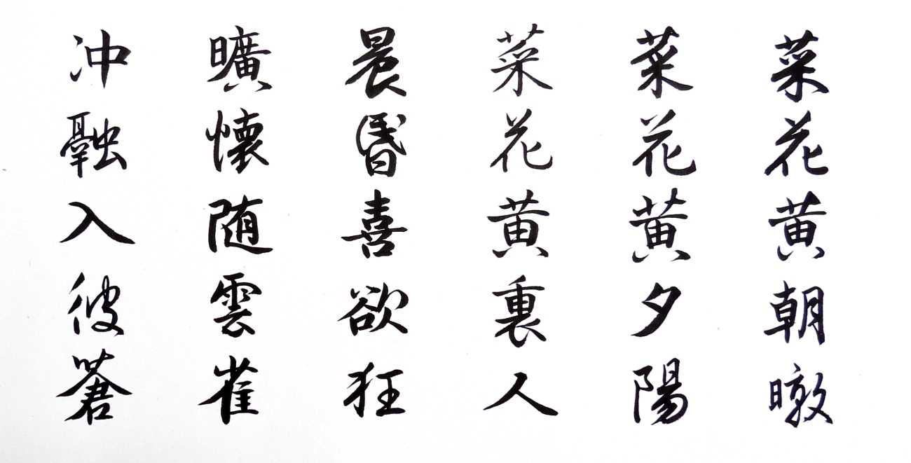 「菜花黄朝暾 菜花黄夕陽 菜花黄裏人 晨昏喜欲狂 曠懐随雲雀 冲融入彼蒼 縹緲近天都 迢逓凌塵郷 斯心不可道 厥楽自潢洋 恨未化為鳥 啼尽菜花黄」(畑一面黄金のような菜の花、さえずる雲雀、春たけなわだ、自分も雲雀になって青空に歌いたい)