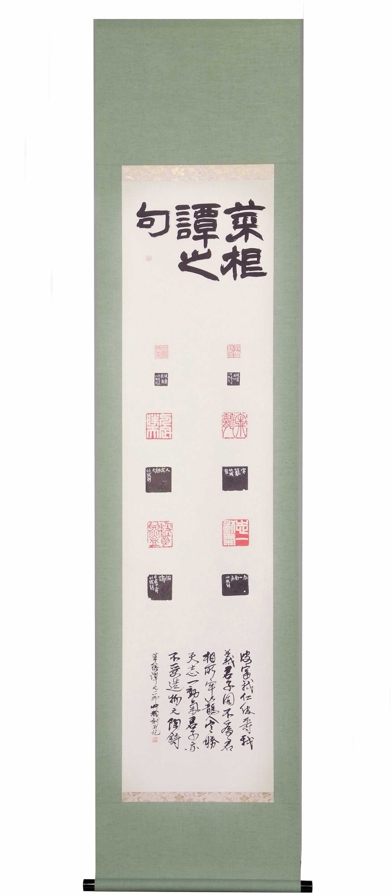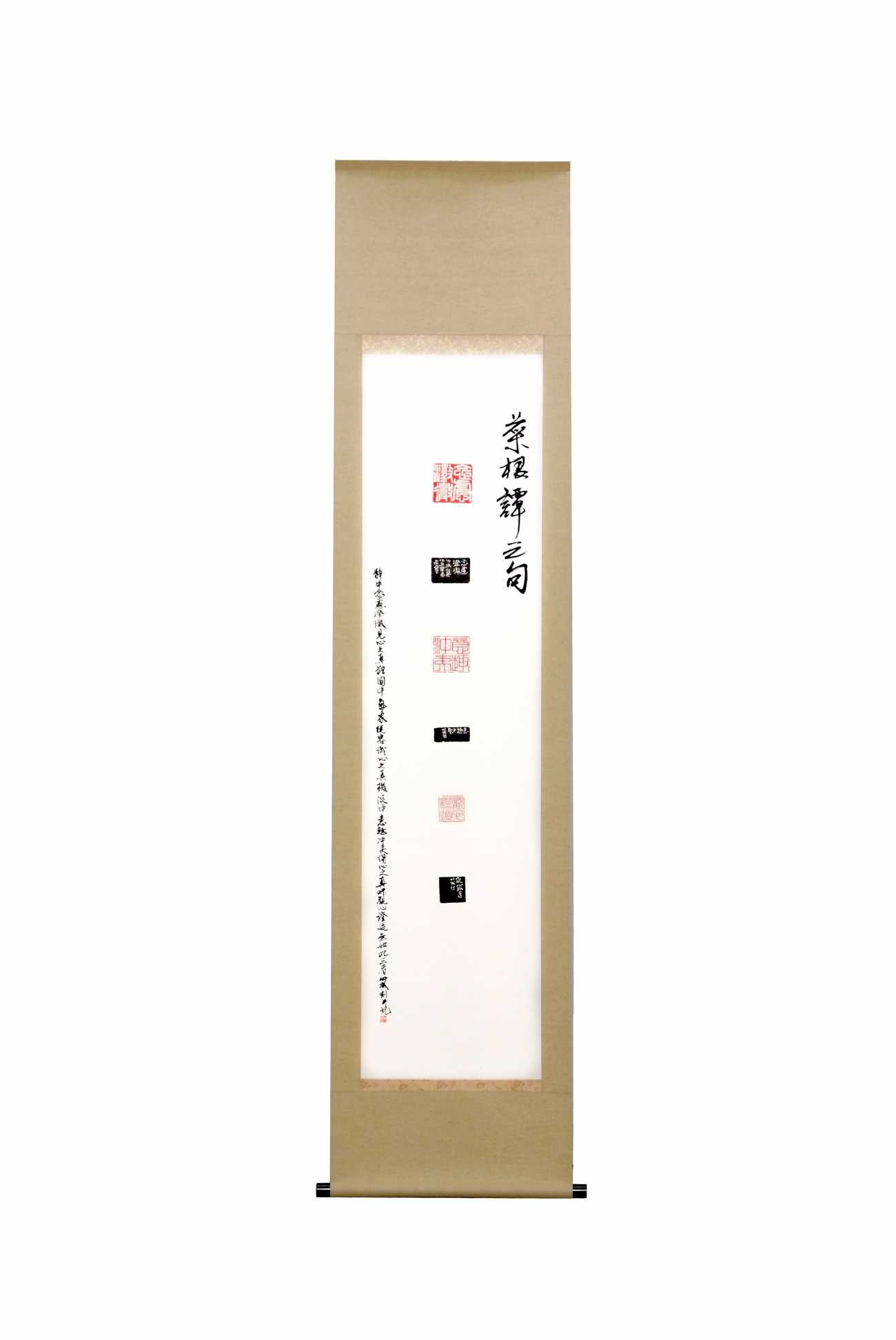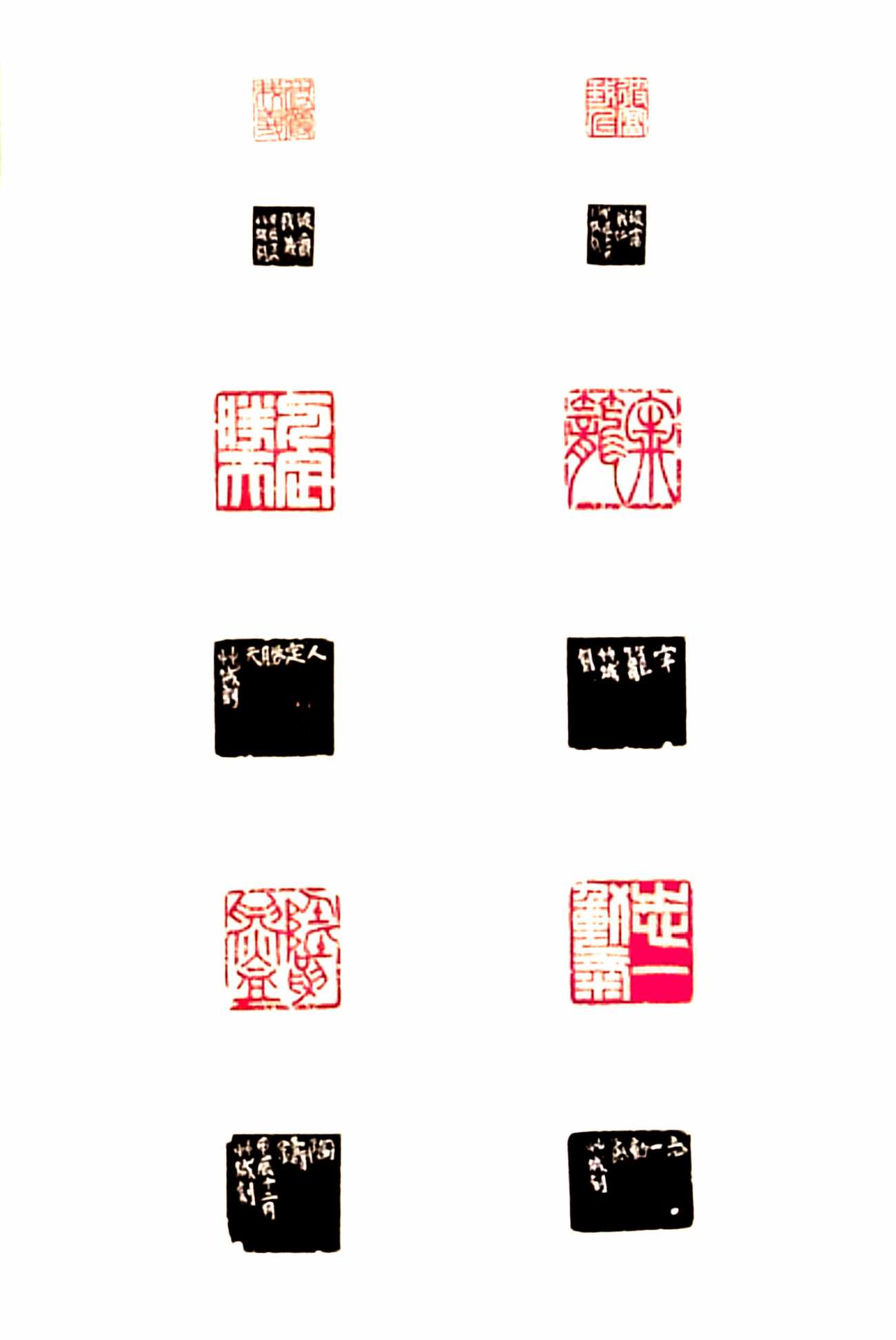 菜根譚の一節の熟語箇所を篆刻作品にし、1寸(3㎝)から2寸(6㎝)の印6顆を押印した印屛作品を制作した。