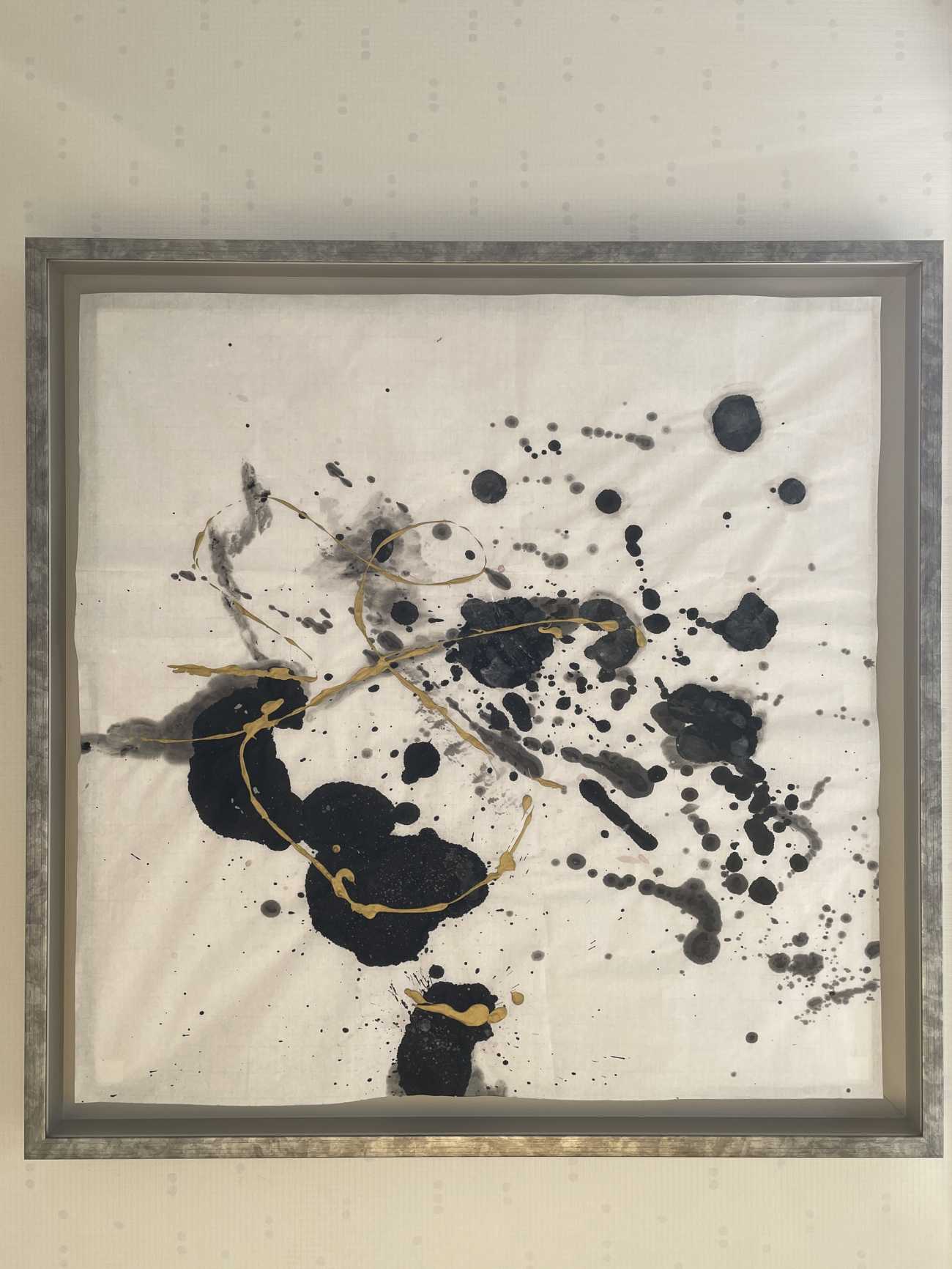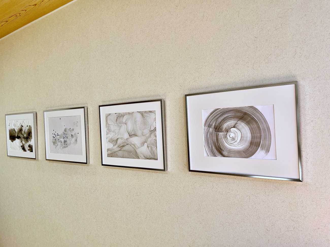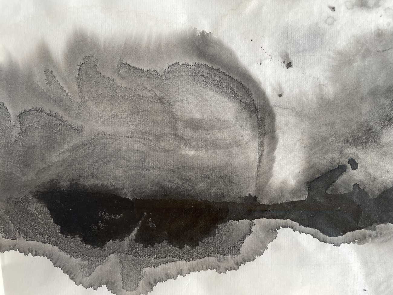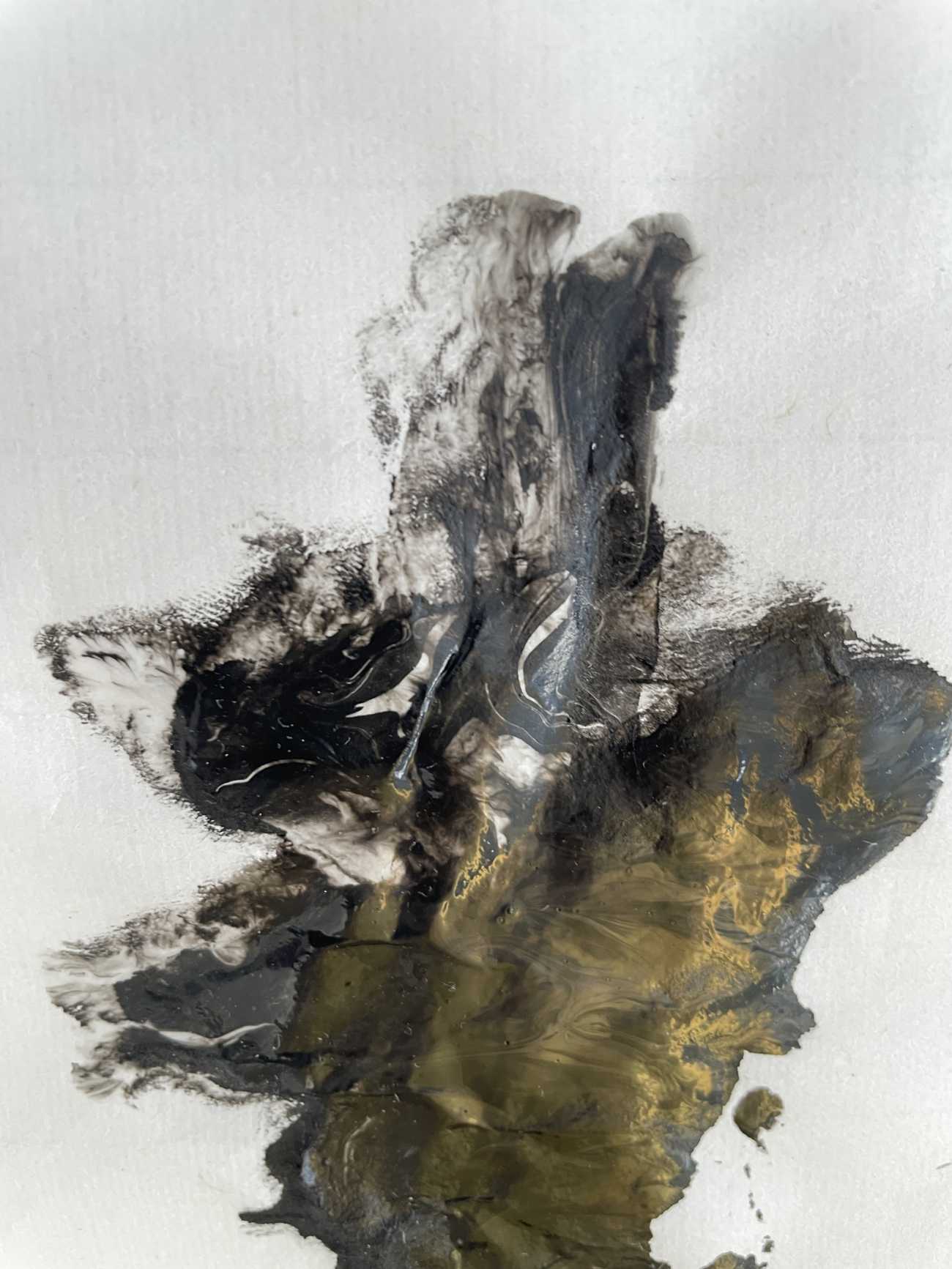 心の中の記憶、脳内の動き、肉体の存在を墨象で表現する。