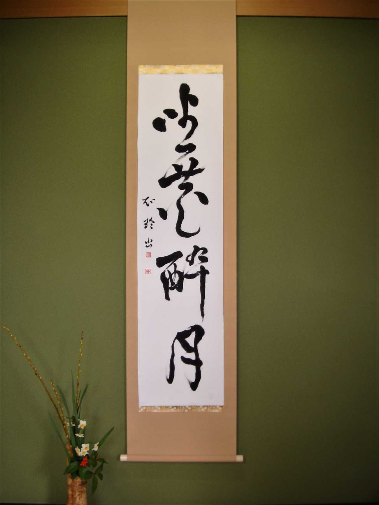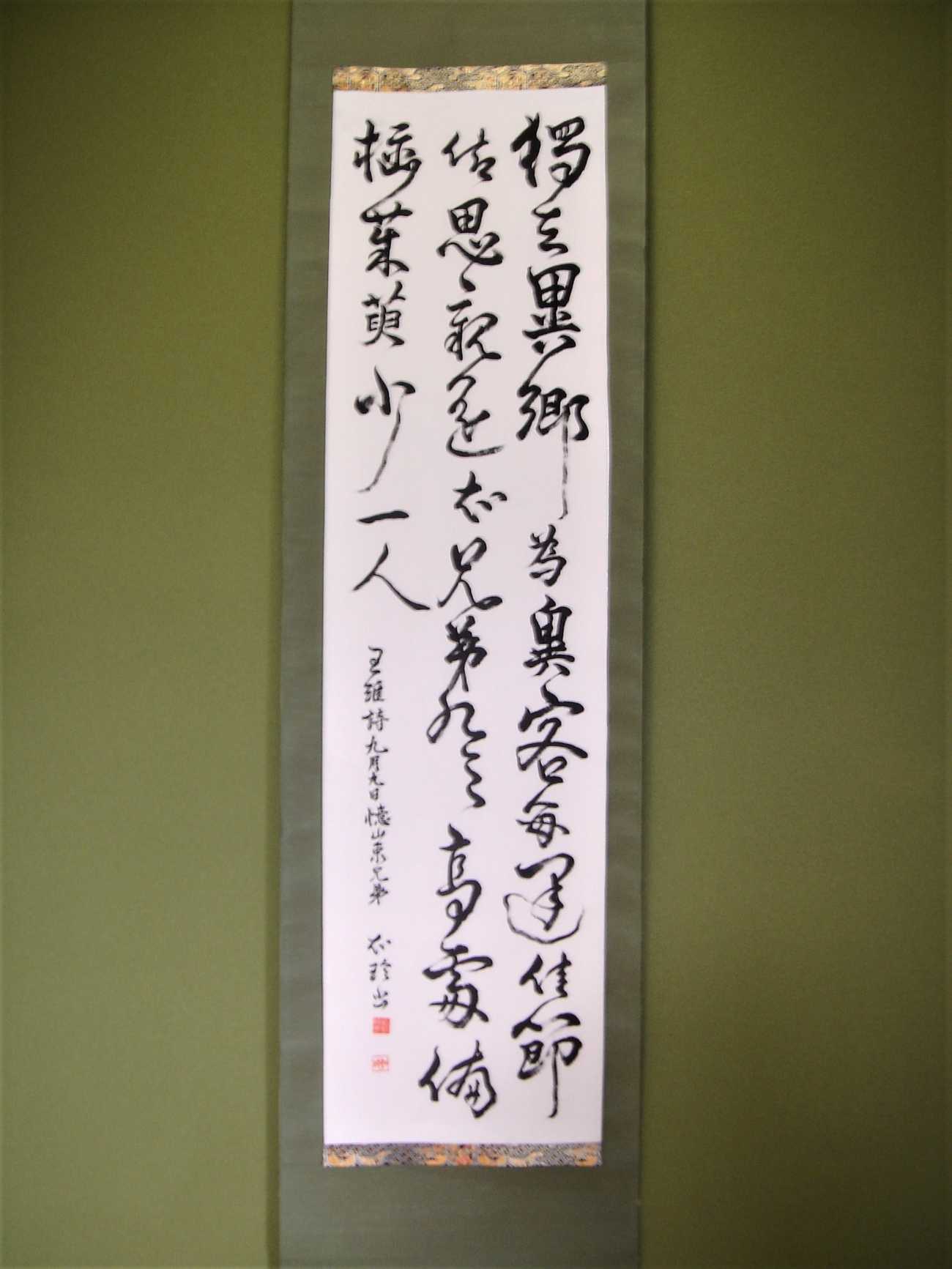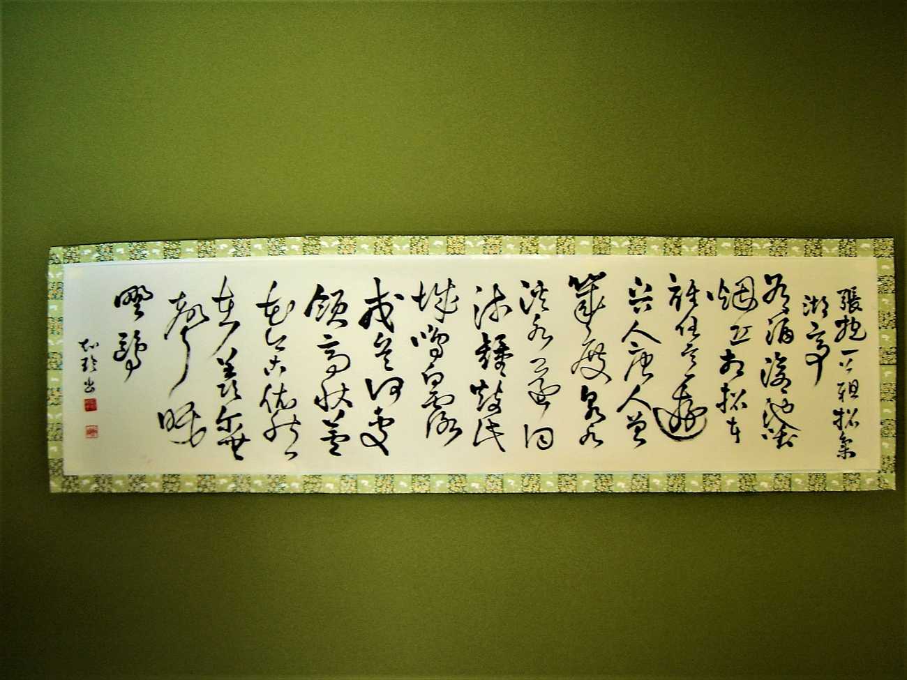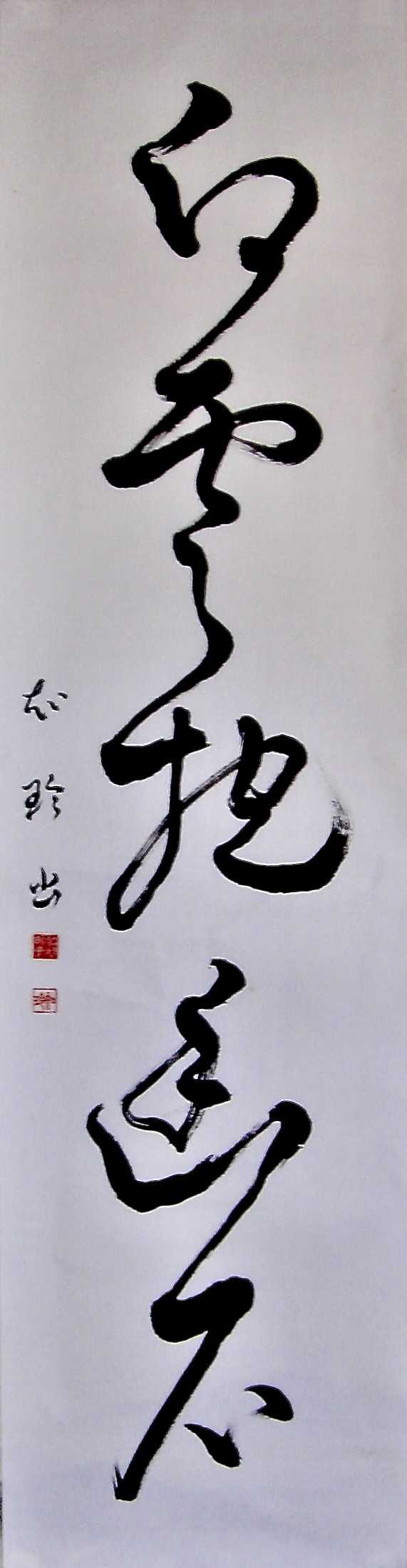 王鐸の書を学ぶにあたって、はじめに臨書にふさわしい書物を探し、条幅作品を選んだのがこの作品である。その中で、文字の大小や連綿など王鐸の書風や特徴を捉え、臨書に取り組んだのである。また、行書、草書のそれぞれの特徴を理解し、臨書していくことも大切にしてきた。次に、倣書により創作作品と進め、ダイナミックな作品を目指したのである。