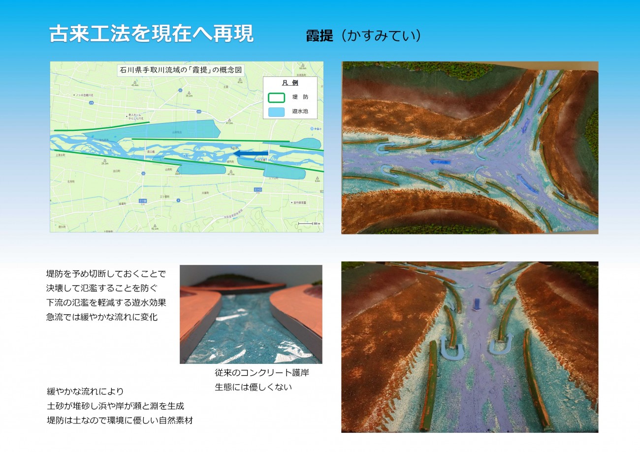 また持続可能で魅力ある河川空間を創る術として、日本古来の治水工法を現在に提案してみた。