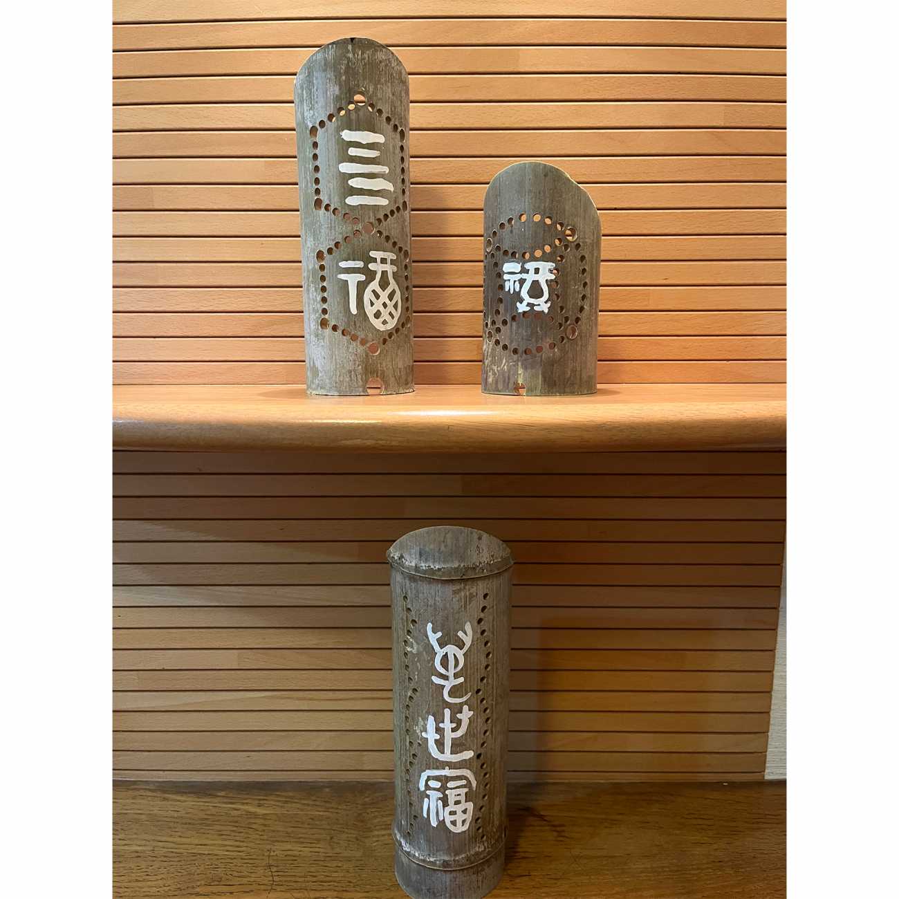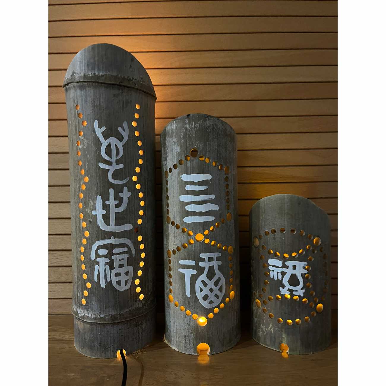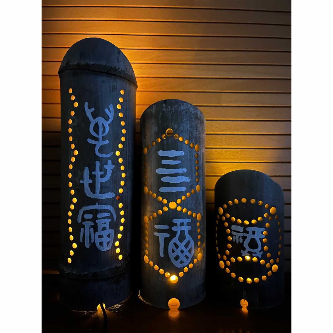 コンセプトは、自宅の中で「目に触れるもの」を打ち出した。遠い存在ではなく、すぐそばにある書である。お客様を縁起の良いものでお迎えするため、玄関の照明を書でデザインした。竹に穴を開け、中から光るように演出した。穴を開けた文様は日本の伝統的で縁起の良いもの、言葉も幸せに満ちあふれてたものを選んだ。竹を使った理由は、節があり、弾力に富み、まっすぐ伸びる。松・梅と共に、めでたい植物とされているからである。