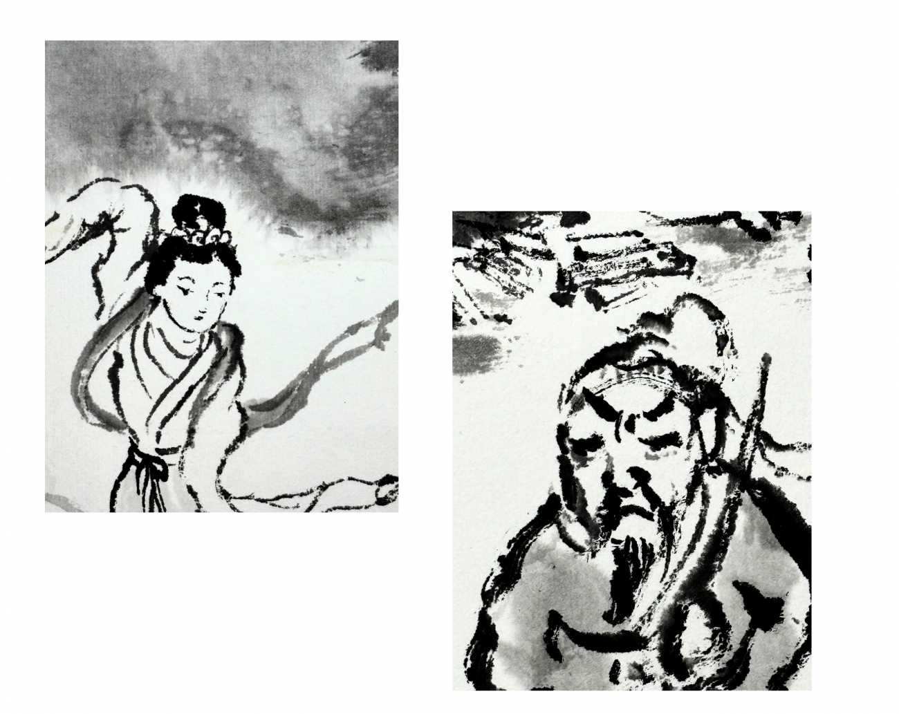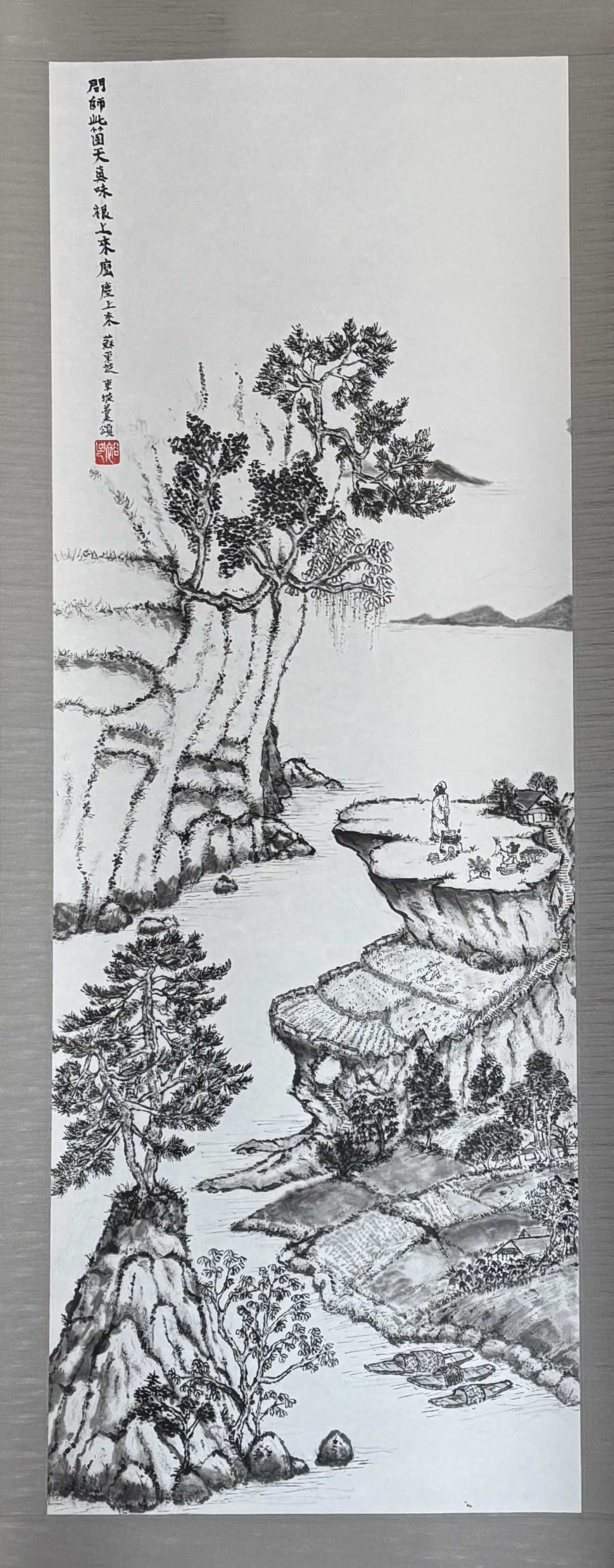 右「東坡羹頌 問師圖」 136×50cm 紅星牌浄皮単宣 墨
