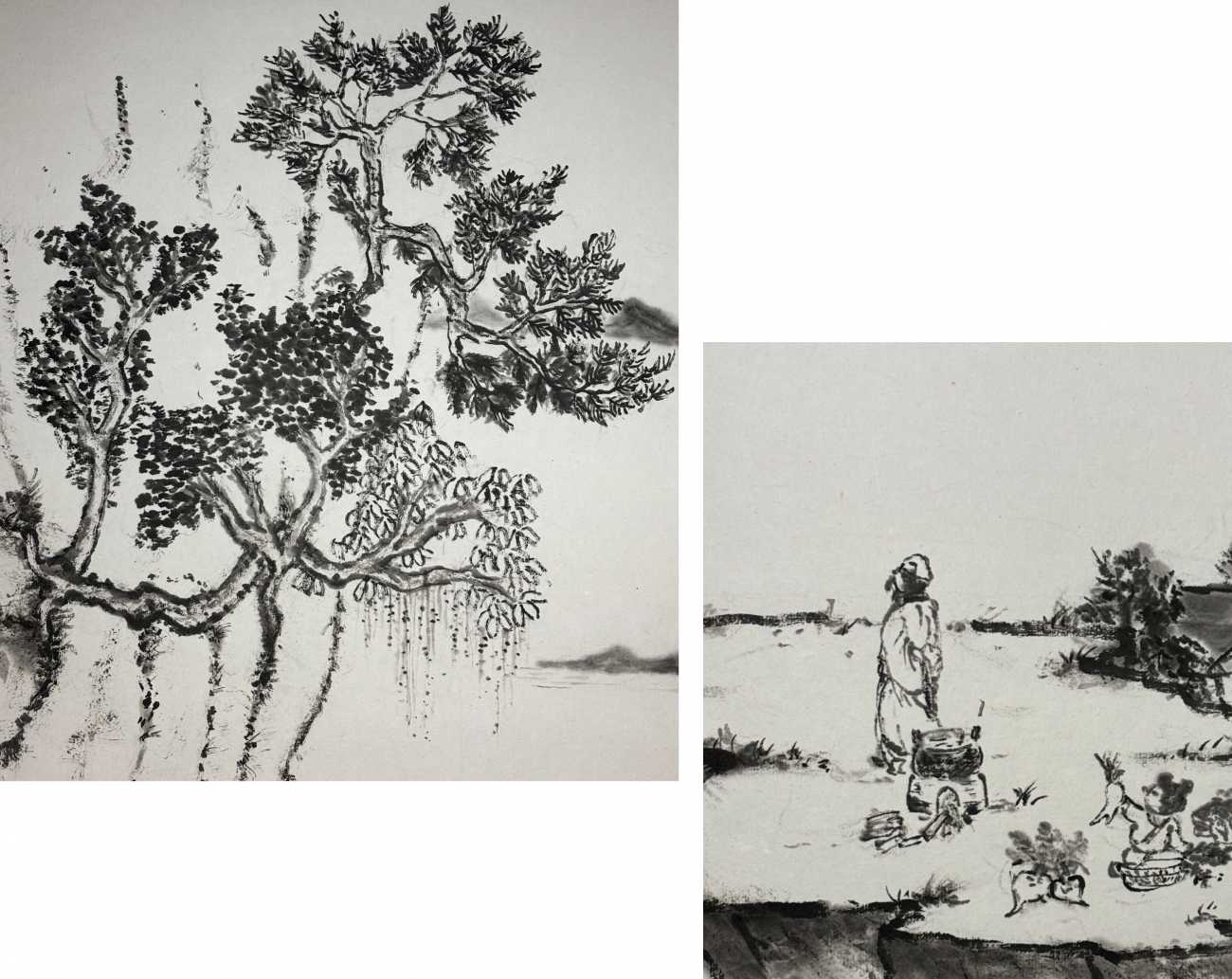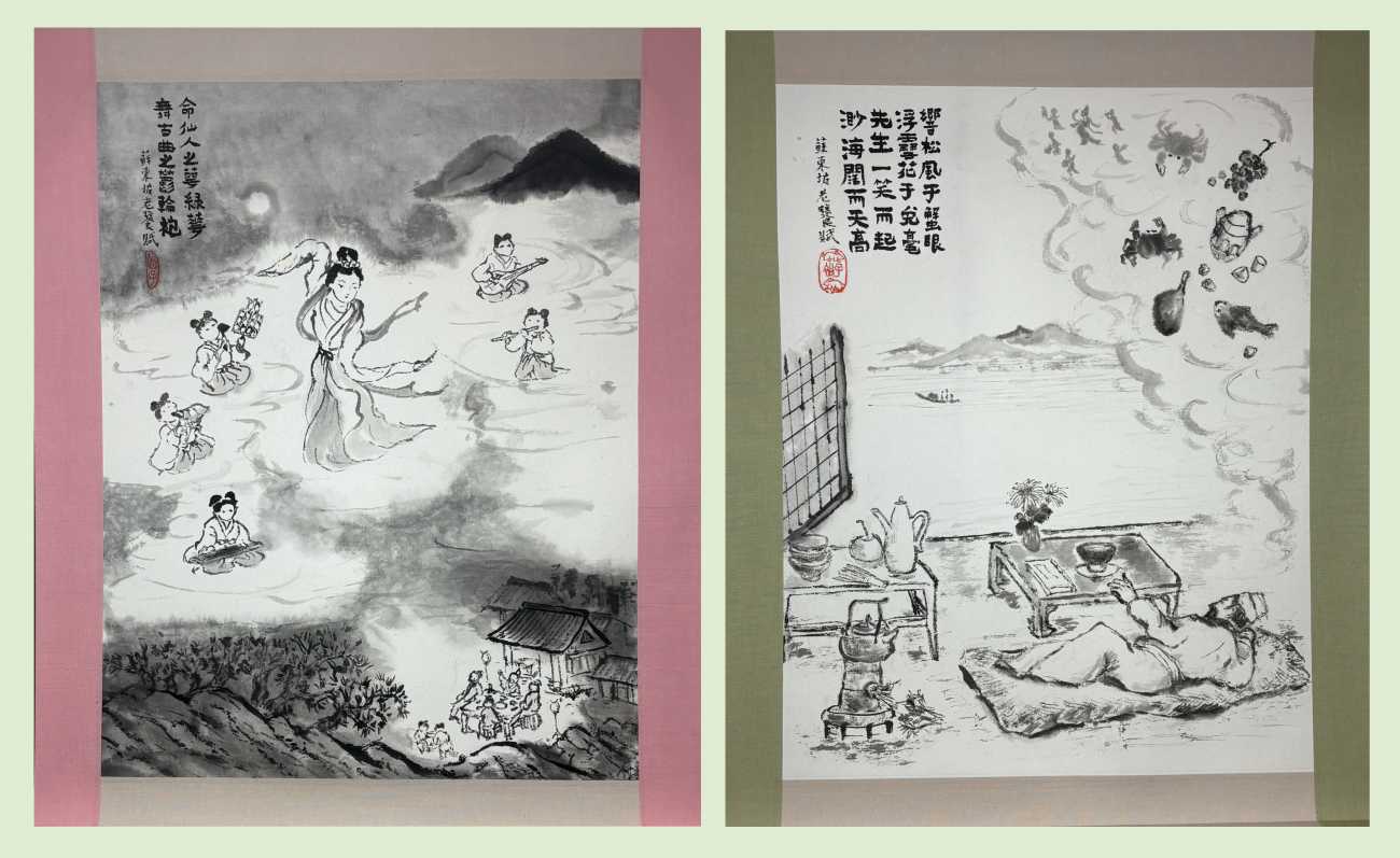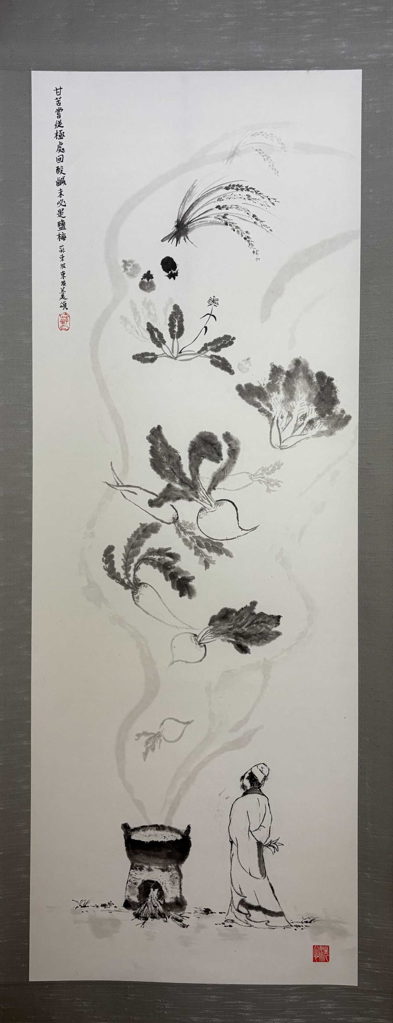 左「東坡羹頌 甘苦酸鹹圖」 136×50cm 古汲箋 墨