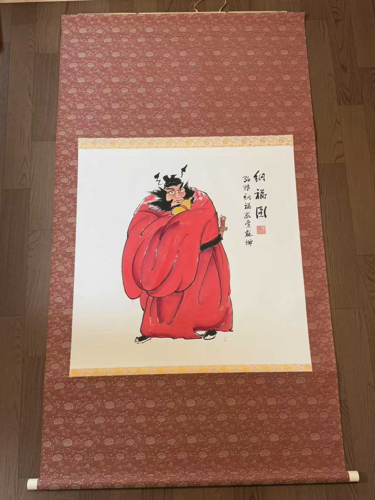 絵の中の鐘馗は威厳があり、剣を持って斜めに気をつけて、不意に出て、悪霊を追い払うという意味で、中国の勤労人民の邪悪な退治、災害回避、祝福の願いを託している。