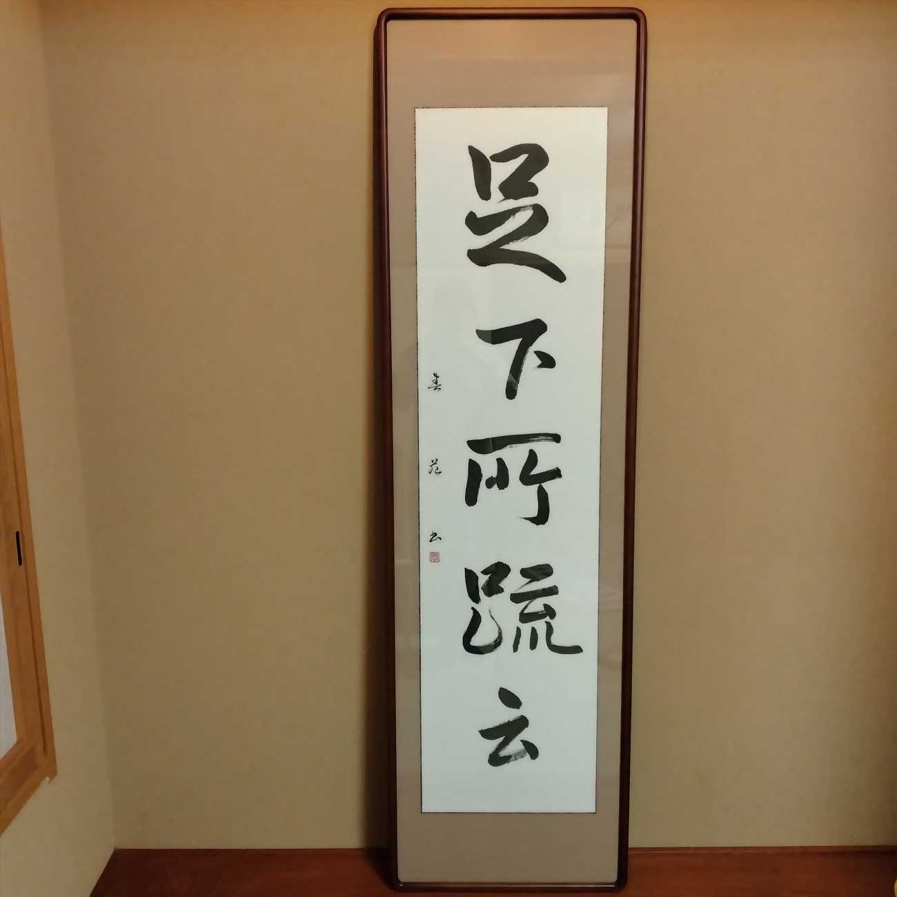 枯樹賦が十五歳の時書いた行書で、これを臨書しました。署名はありません。ゆ信の賦を遂良が書いたという記録にあり、書の高格なことと用筆法の巧みさに特色があります。同じ大きさになるように苦労しました。十二単を着て巻き物を書いている感じでした。