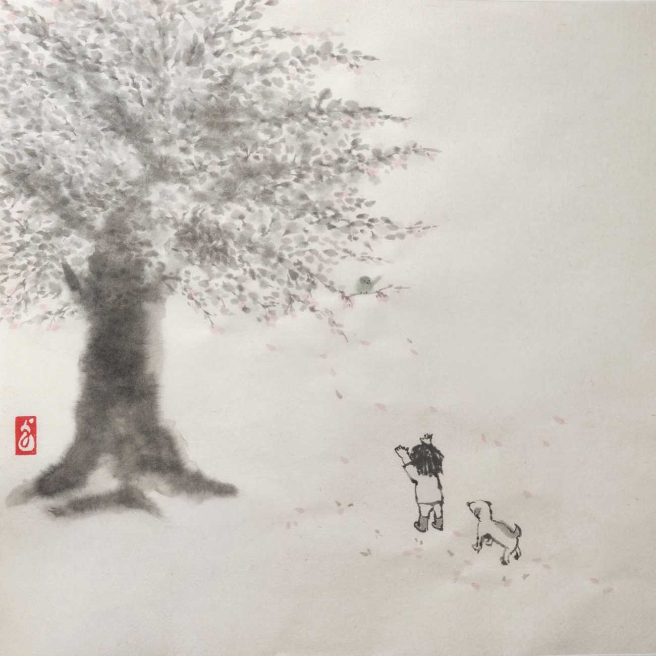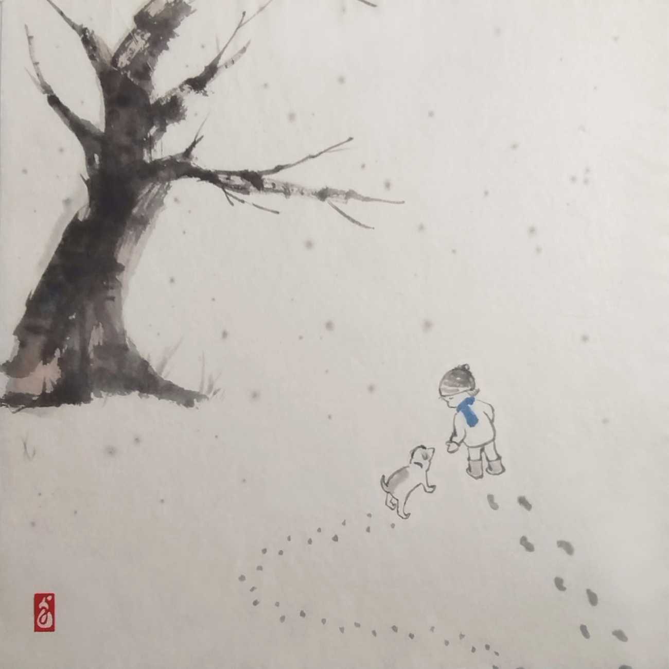 制作中は、少年と犬そして桜に癒されながら楽しく描きすすめることができました。
