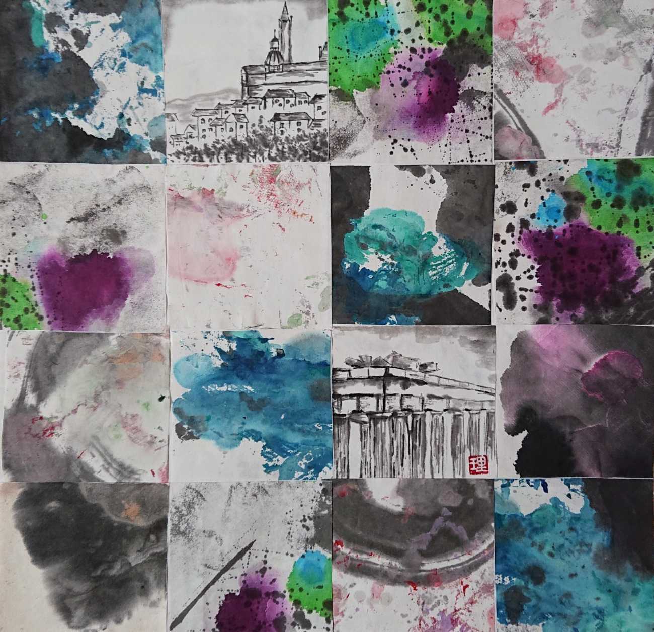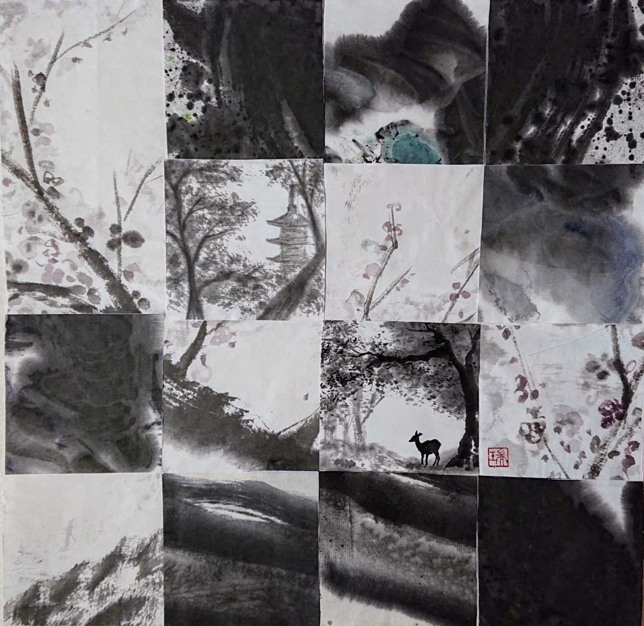 書の世界は緊張感が高く、一発勝負であると思う。だから反古紙も多い。だが水墨画の世界では後から加筆できる上、失敗した一部を別の作品に生かすことができることを知った。