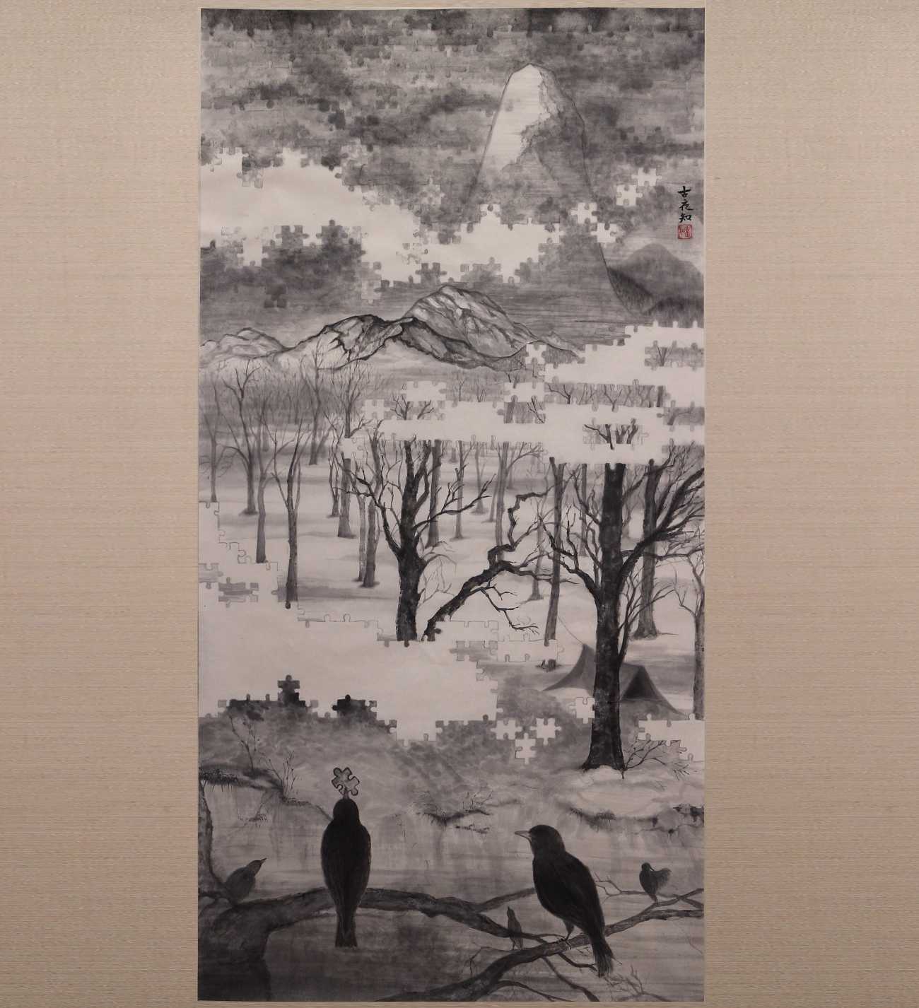 墨間に閑寂な世界を、そして無限の飛行空間を感じていただけたらと思う。