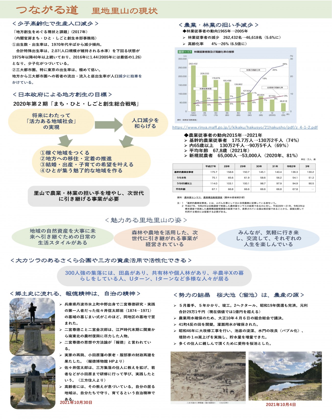 里地里山は、過疎化が進み、ますます不便な地域になっていくが、豊かな自然環境がまだ残されている。持続可能な世界への道が残されている。三方住人の人々が、自然の厳しさと共存し、心豊かに暮らしている姿が私を呼んでいる気がした。